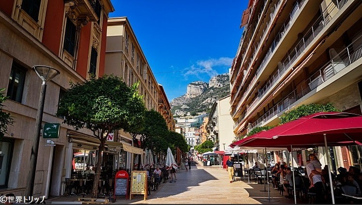 Vue sur la rue Piétonne Princesse Caroline et le port.