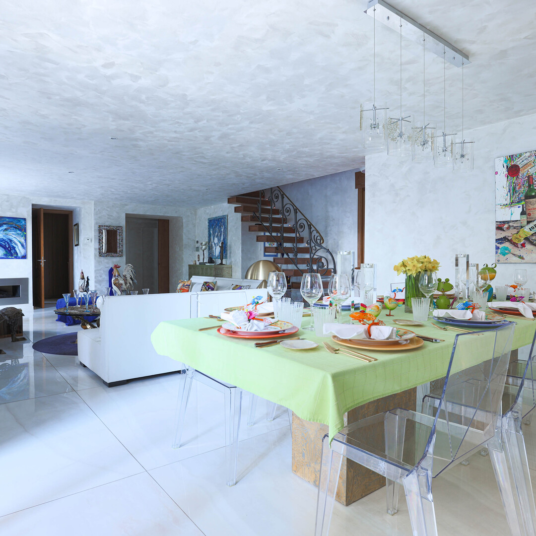 Primo piano : 1 ampio soggiorno con pavimento in marmo, 1 sala da pranzo, 1 grande cucina, 1 ufficio e 1 bagno per gli ospiti.