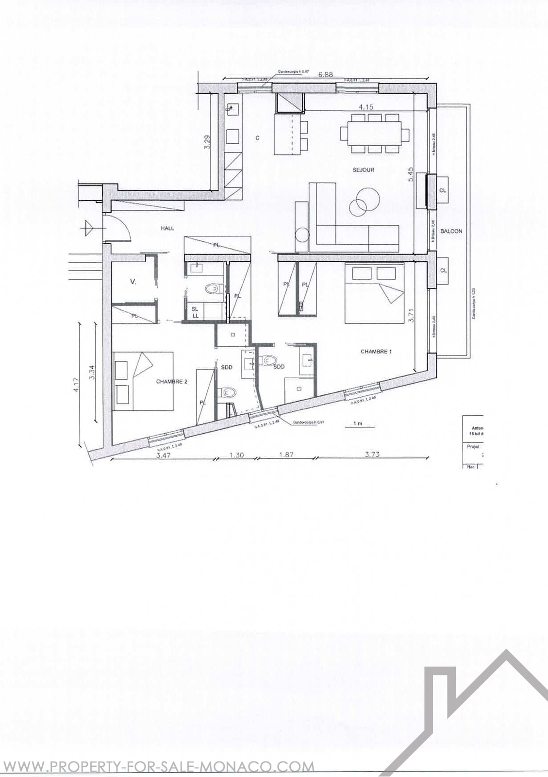 Proprio nel centro di Monaco, magnifico appartamento di 3 locali decorato e arredato con servizi di lusso.