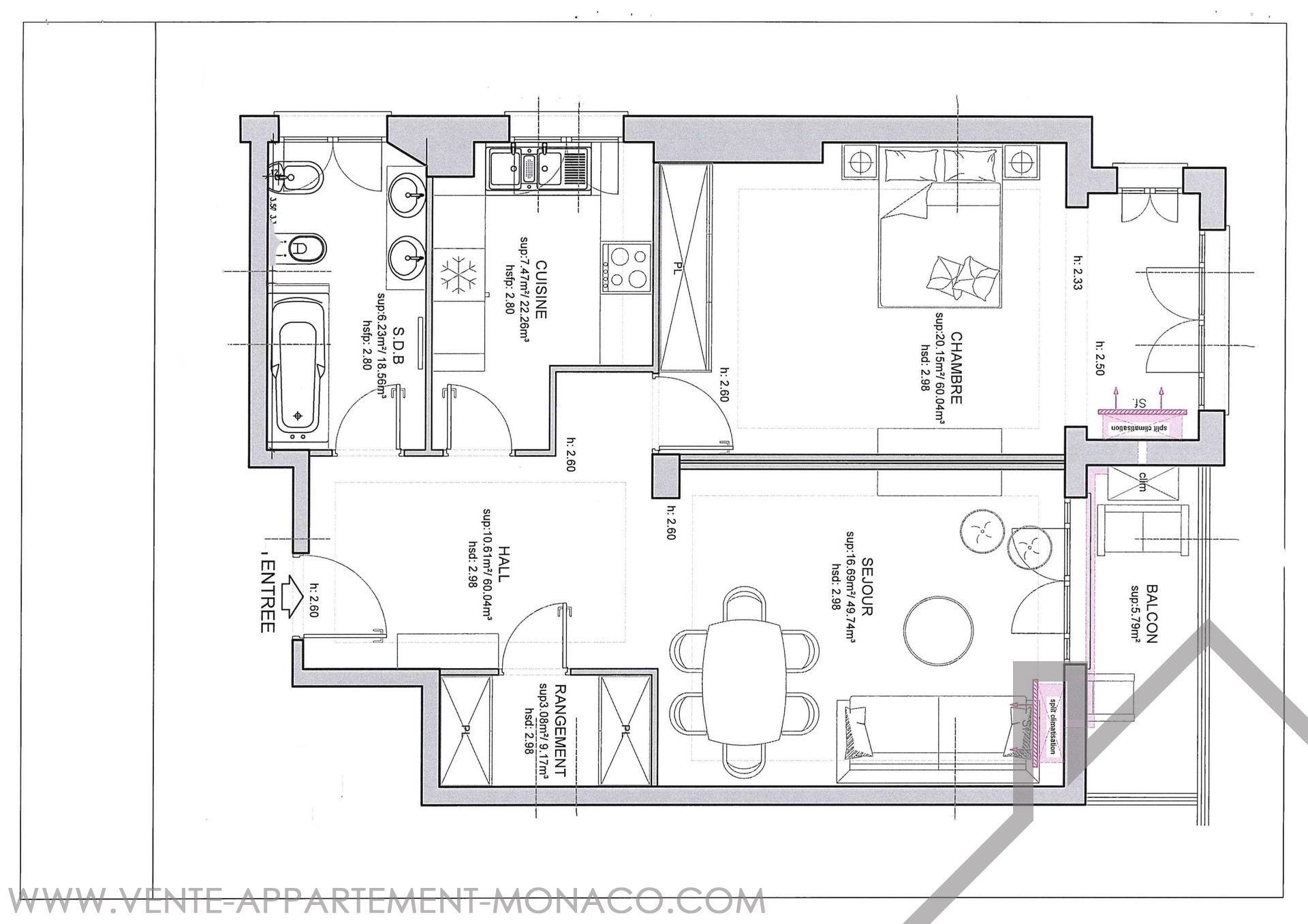 Superficie totale : 71 m²