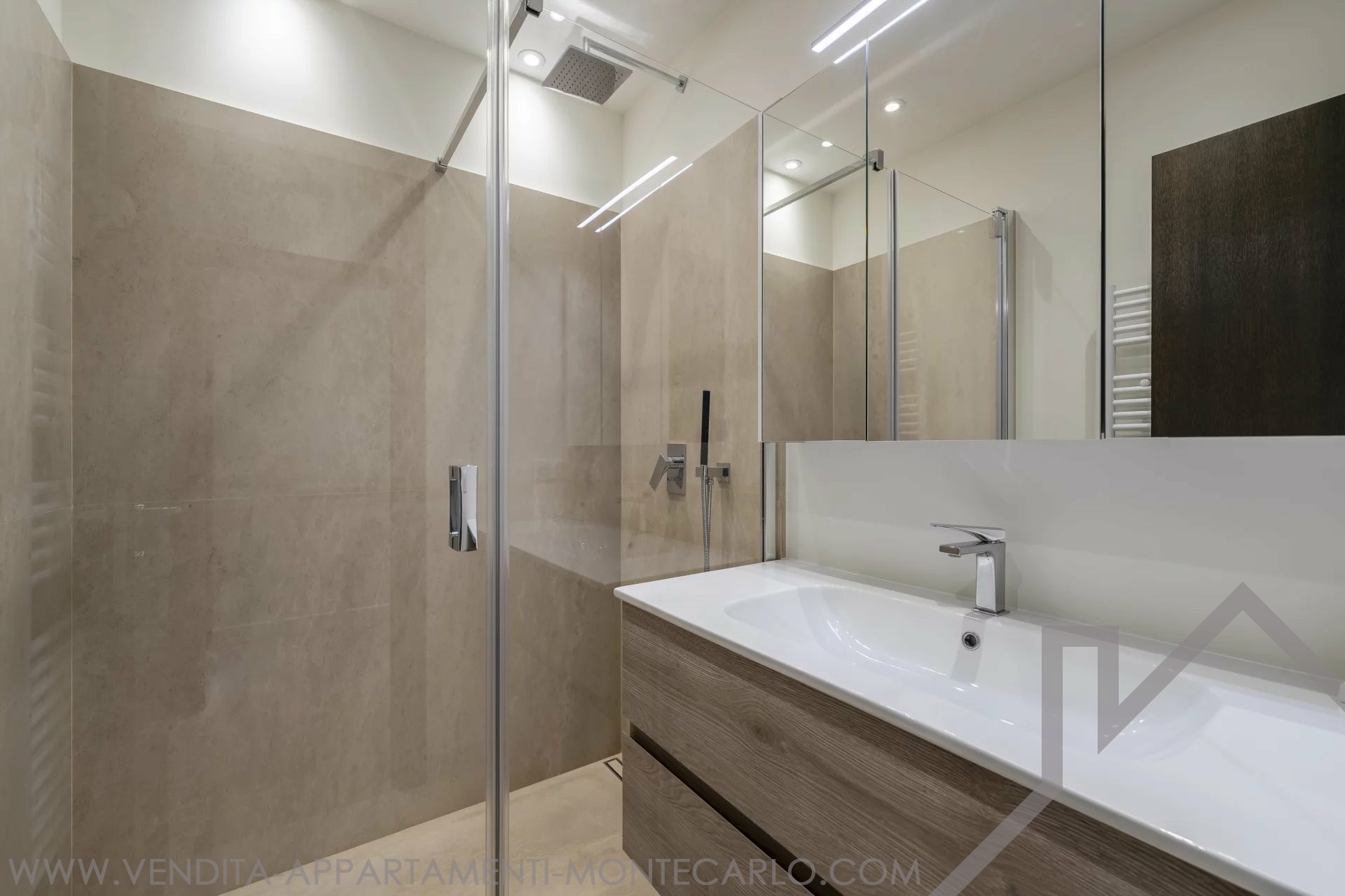- camera da letto con bagno con doccia che si apre sulla loggia posteriore