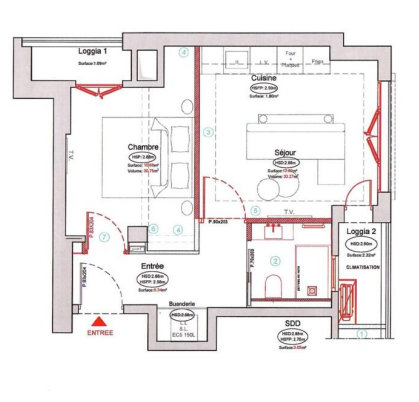 Superficie totale : 53 m²