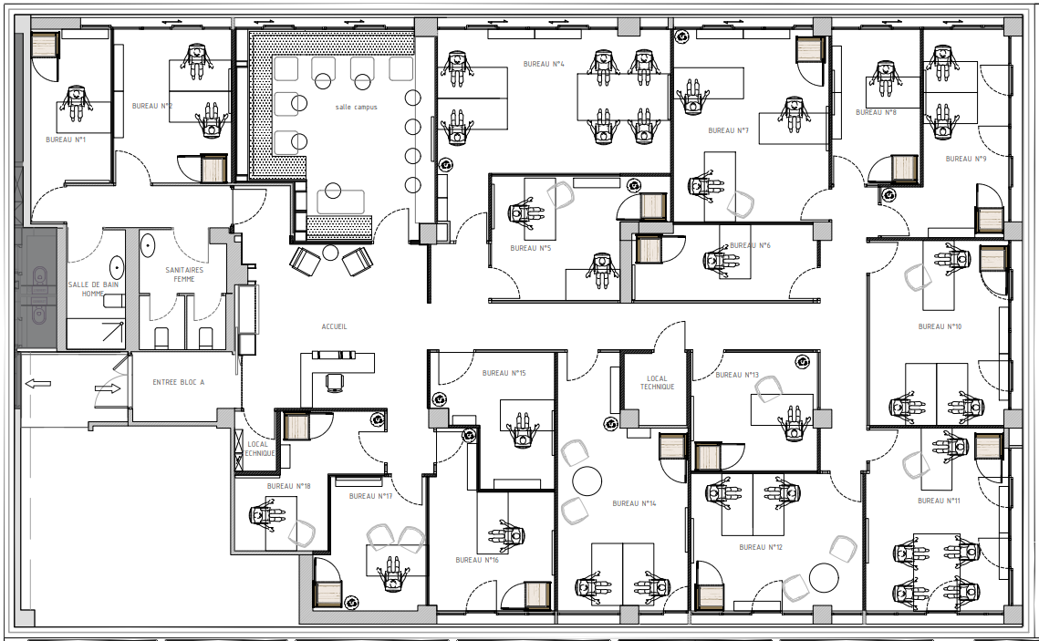 Si tratta di 18 uffici esclusivi di alta gamma con reception, cucina, tre bagni e una doccia.