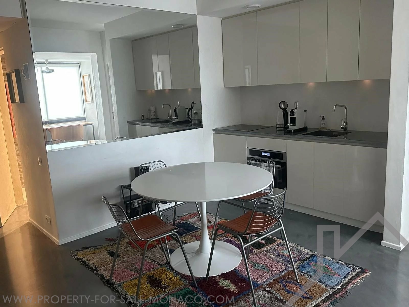 Il monolocale, con una superficie di 40 m², comprende un ingresso con armadio a muro, una sala principale con cucina attrezzata, una zona notte e un bagno con doccia completo. Gode di una vista sul mare e su Cap Martin. Il monolocale viene venduto con cantina e parcheggio.