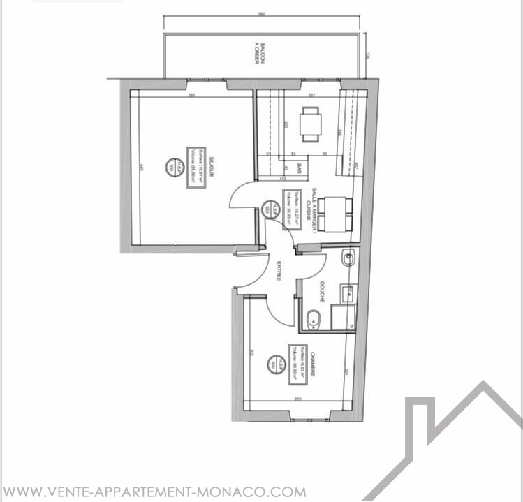 Superficie totale : 65 m²