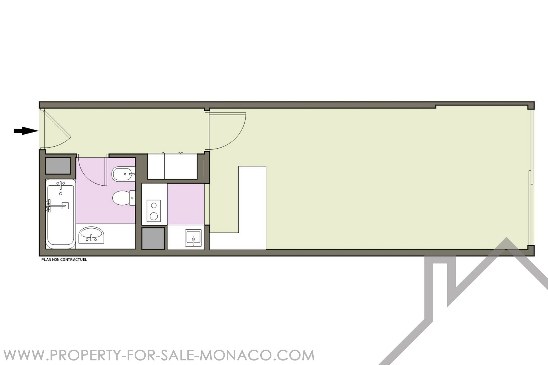 Si compone di un ingresso, bagno, grande soggiorno con cucina americana.