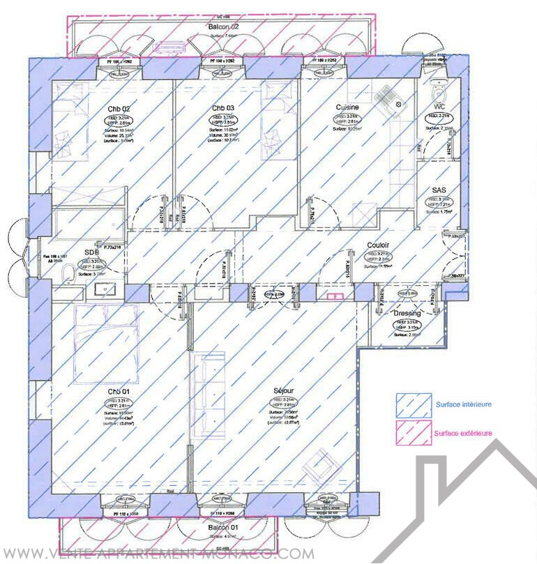 Superficie totale : 125 m²