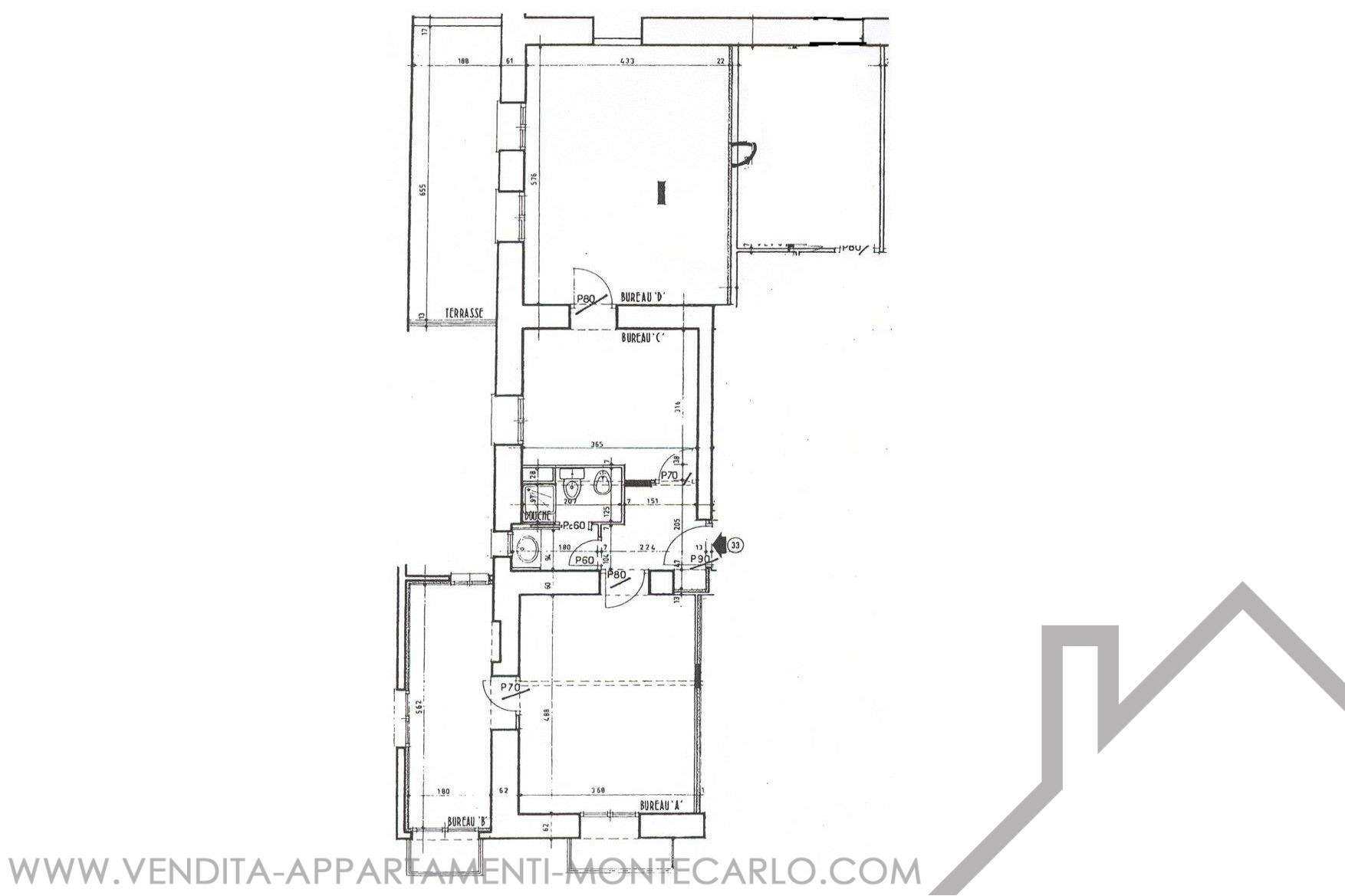 GRANDE UFFICIO di 4 locali in un edificio borghese, vicino a tutti i servizi, situato sul Boulevard des Moulins. Ha una superficie totale di 123 mq di cui 116 mq di superficie abitabile e una terrazza di 7 mq. Descrizione: 4 stanze, 1 stanza blindata con porta blindata, un bagno con doccia, WC e lavandino. Possibilità di trasformazione ad uso abitativo Libero rapidamente.