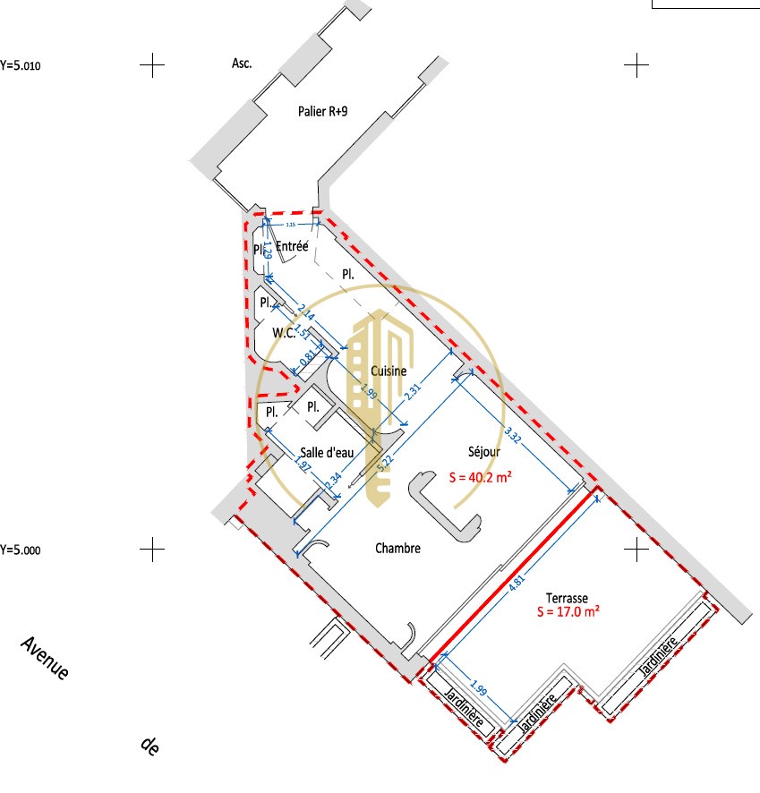 Superficie totale : 59 m²