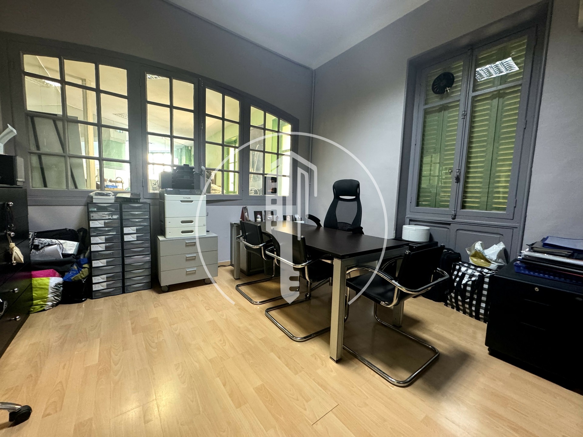 Ampio open space attualmente suddiviso con pareti vetrate, servizi igienici, magazzini.