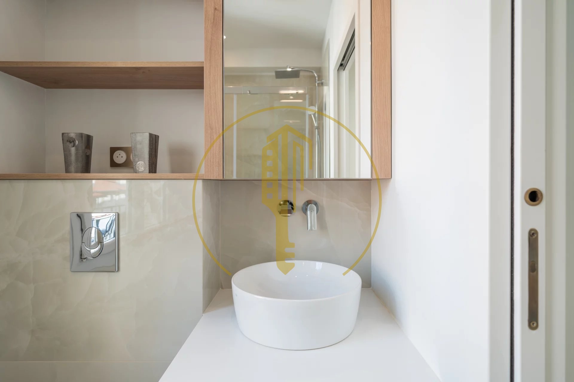 Con 55,8 mq di superficie abitabile e 3,4 mq di balconi, questo affascinante bilocale, completamente ristrutturato e arredato, al 4° piano, gode di vista sul mare e di molta luce naturale.
