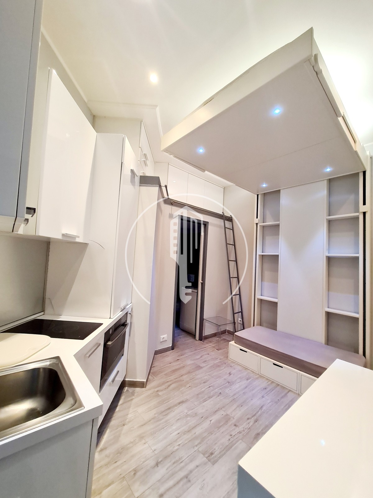 Monolocale sul retro dell'edificio (al 2° sottopiano) composto da una locale principale con angolo cottura, un bagno con wc. Arredato con mobili su misura, è il pied-à-terre perfetto per una persona