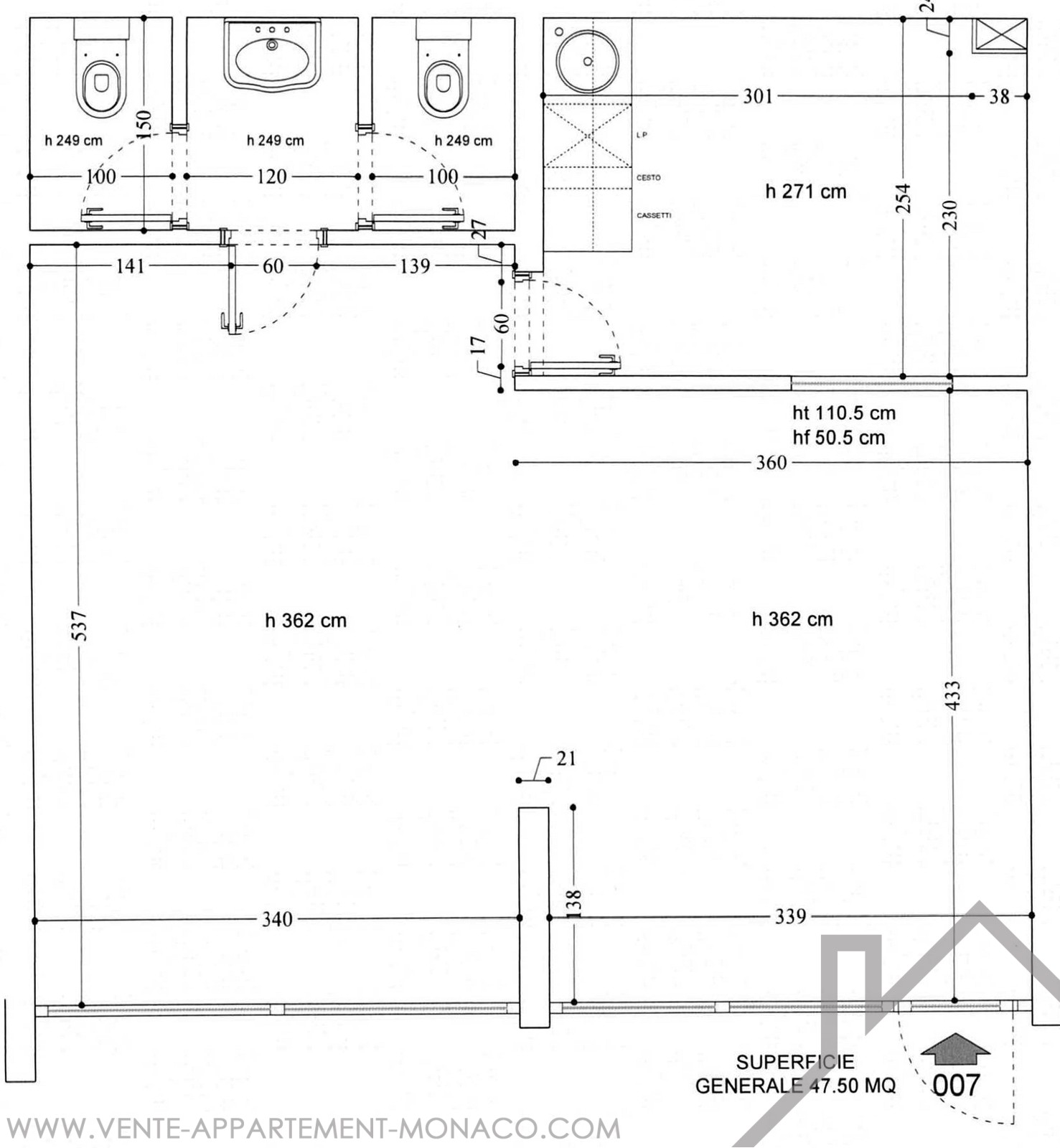 Superficie abitabile : 47 m²