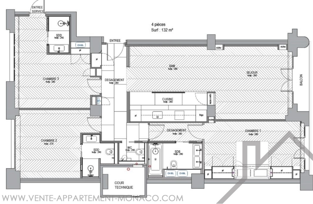 Superficie totale : 132 m²