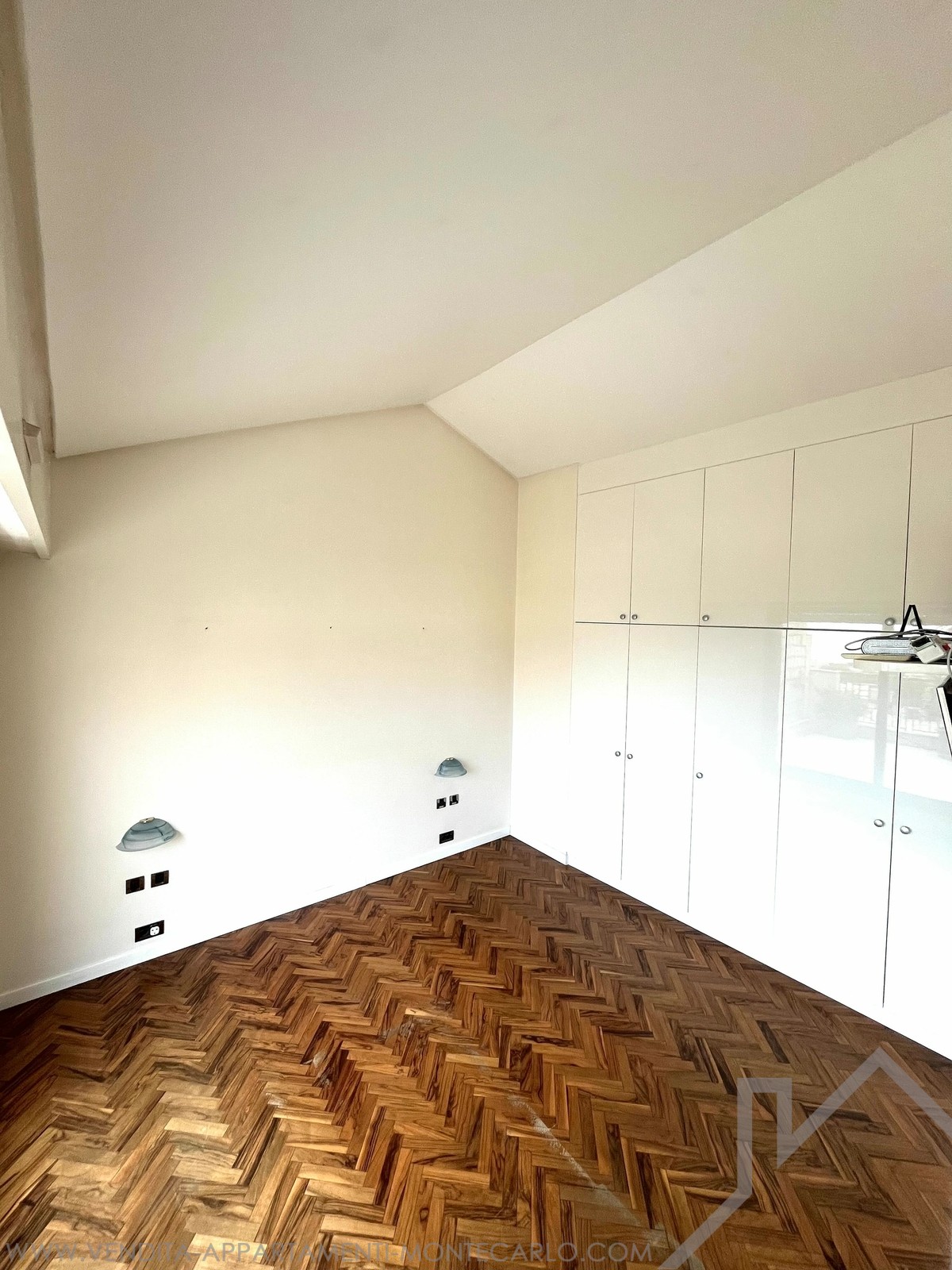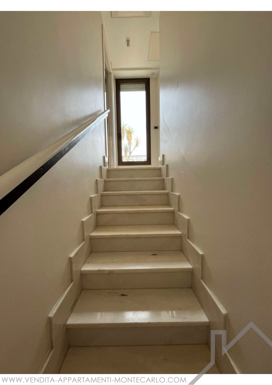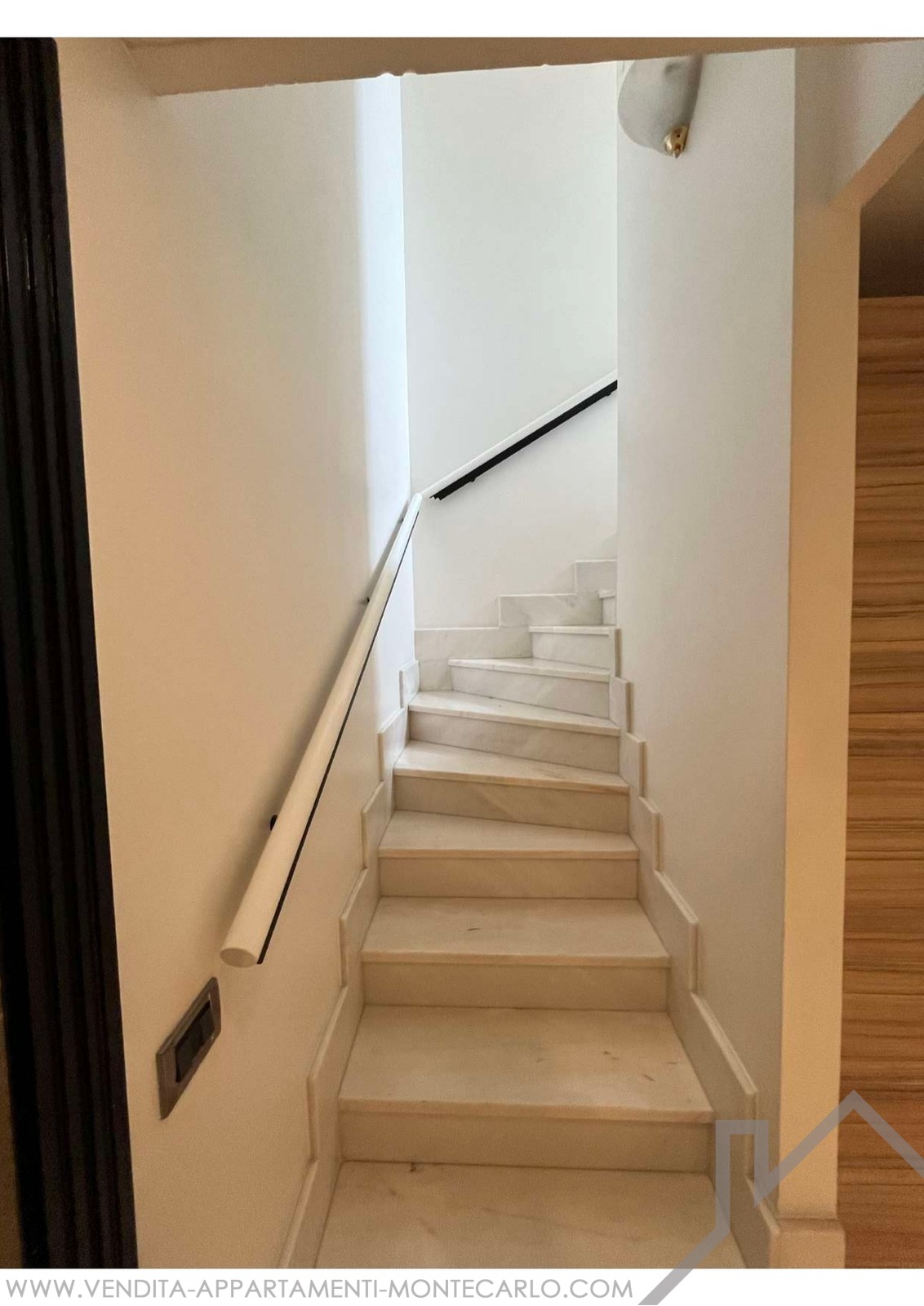 Una raffinata scala conduce al piano superiore, ultimo piano dell’edificio dove troverete una master bedroom con bagno en suite e una grande vetrata che si apre su un’ampia terrazza. Godetevi una vista spettacolare sul mare, sul Rocher e su Roquebrune. Una seconda camera luminosa, anch’essa dotata di bagno en suite, è attraversante, con una finestra che offre vista mare e una portafinestra che conduce a un piccolo balcone sul retro. I volumi delle camere sono particolarmente notevoli grazie a un’altezza del soffitto generosa, che offre una sensazione di spazio e luminosità.
