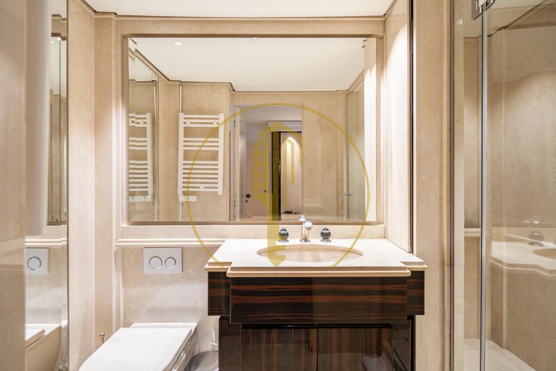 Si compone di: ingresso con armadi, soggiorno con terrazza con vista sul Casinò, sala da pranzo che si apre su una terrazza con vista sul mare, cucina separata completamente attrezzata, camera da letto principale con bagno con doccia, terrazza con vista sul Casinò, ampio spazio di archiviazione, bagno per gli ospiti.