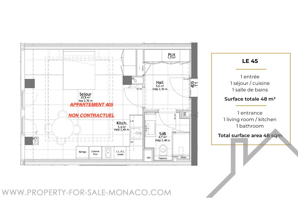 Superficie totale : 48.3 m²