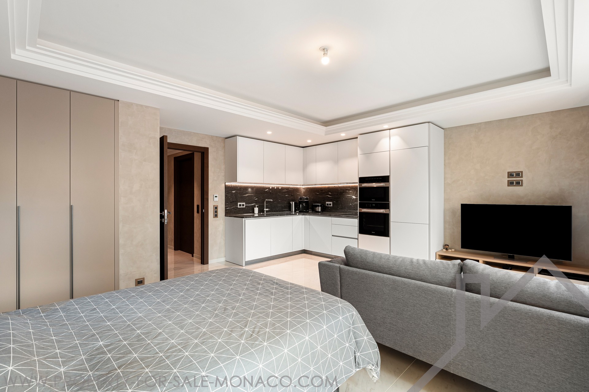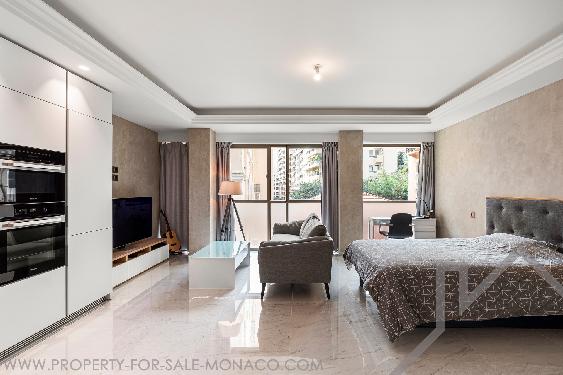 Proponiamo in esclusiva la vendita di un affascinante monolocale nel cuore di Monaco, nel vivace quartiere di Condamine.
