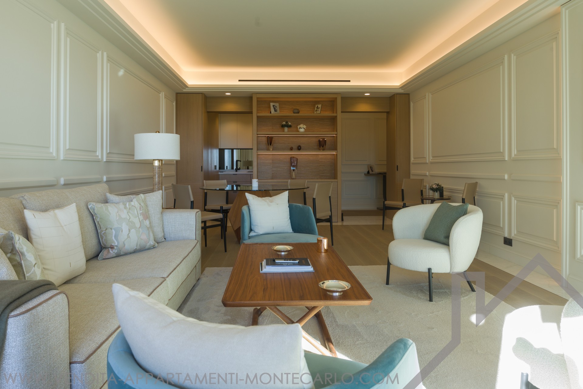 Ideally located in the prestigious Carré d’Or, this exceptional apartment offers spectacular views of the Casino and the sea while providing a luxurious and bright setting. With a well-thought-out layout and high-end finishes, it represents a true haven of peace in the heart of the city.