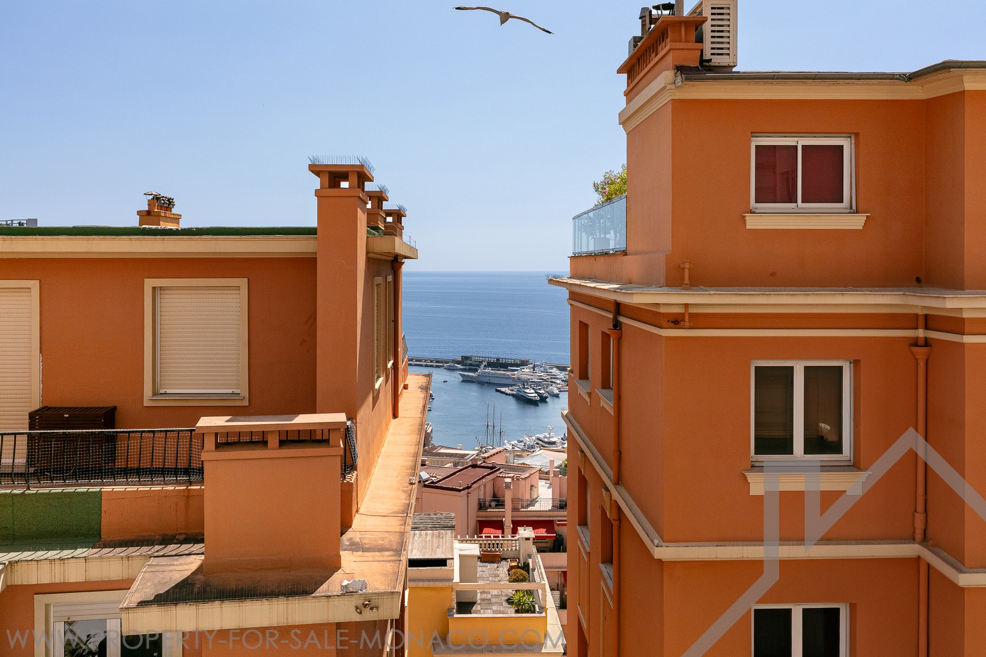 Questo appartamento al 6° piano offre un'ampia terrazza con vista sulla città e fuga verso il mare.