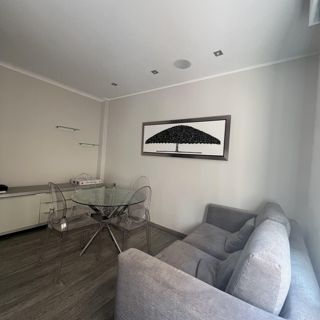 Nel cuore di Monaco, appartamento bilocale con soggiorno luminoso e aria condizionata in un edificio borghese.