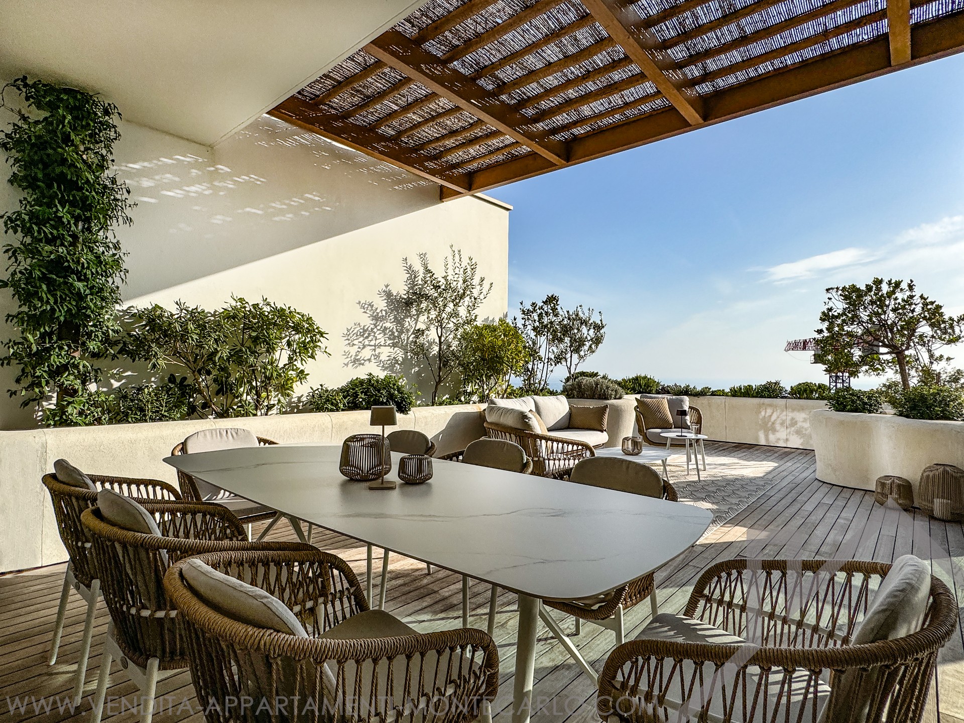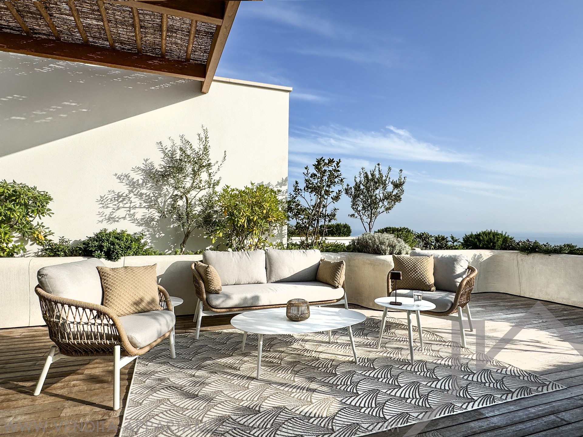 L'appartamento dispone di un'ampia terrazza di 53 m² che offre una vista panoramica mozzafiato sul mare.
