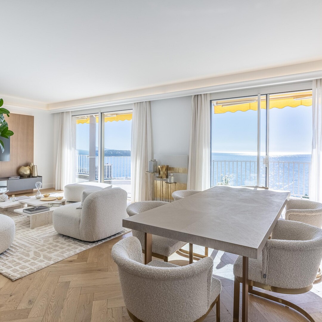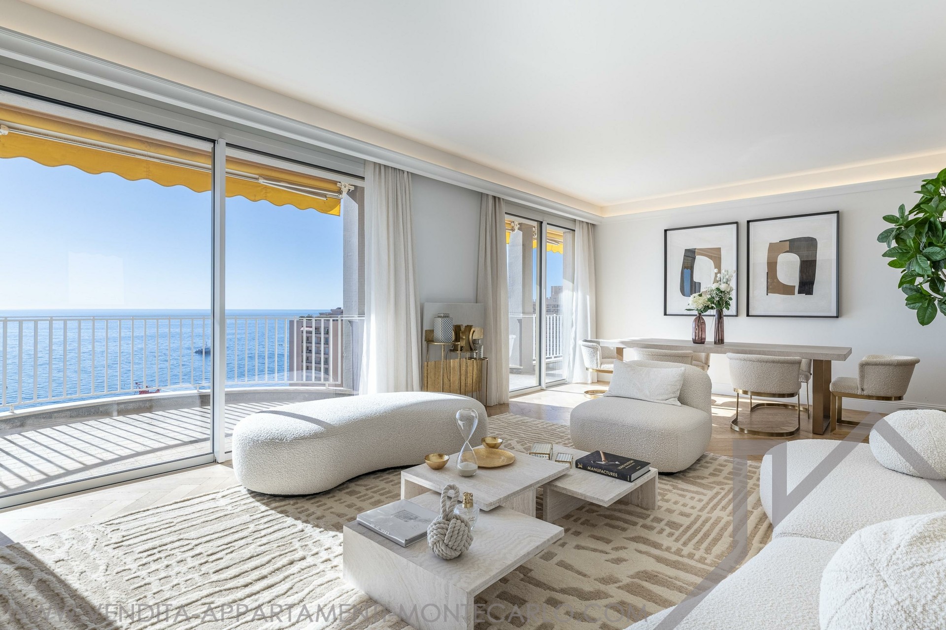 Con una vista eccezionale sul mare e sulla Principato, questo appartamento di 3 locali all'ultimo piano è situato in un edificio di prestigio a due passi dalle spiagge e vicino a tutti i servizi.