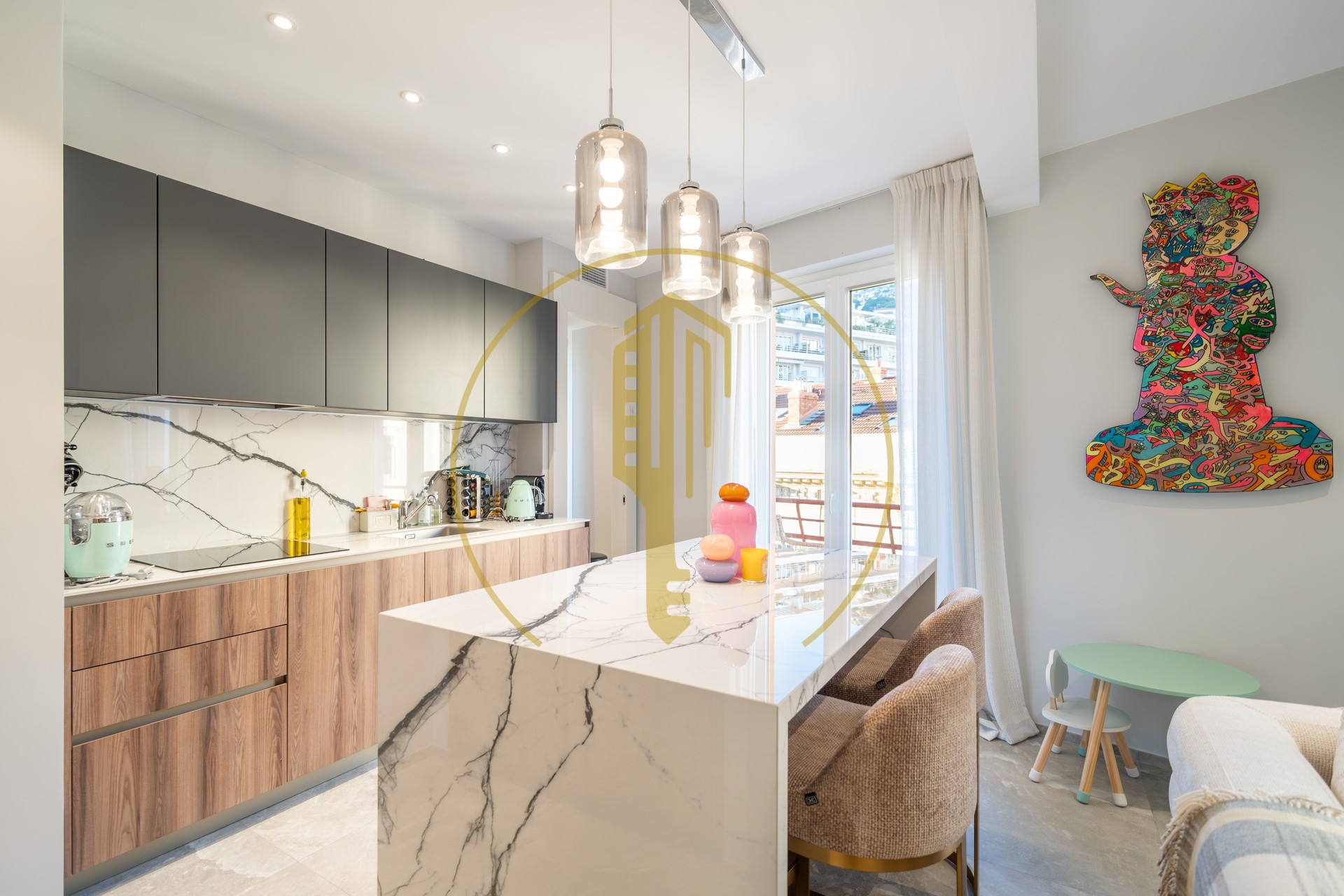L’immobile è stato completamente ristrutturato e offre 110 mq di spazio interno, oltre a una terrazza di 20 mq con vista sul Boulevard Princesse Charlotte.