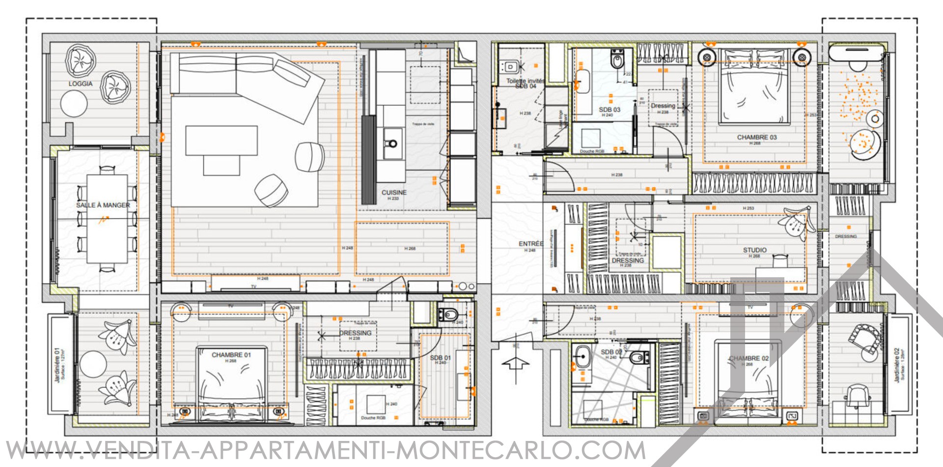 L'appartamento comprende quattro ampie camere da letto, 3 bagni e un bagno per gli ospiti. Le terrazze sono state chiuse per ampliare la zona giorno, permettendo alla luce naturale di fluire tutto l'anno.
