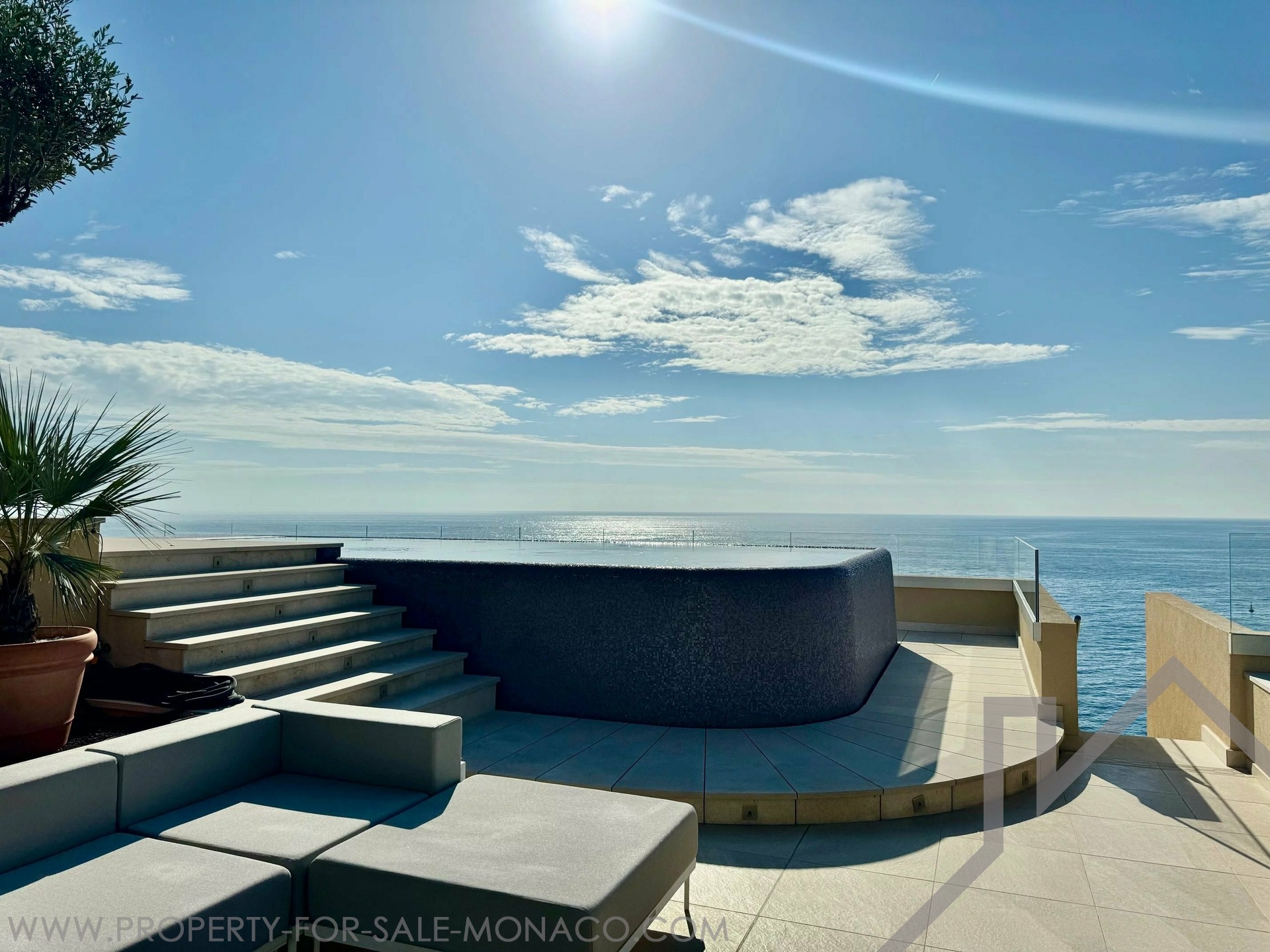 Questo spettacolare attico di 600 m² si sviluppa generosamente su due livelli. L'immobile di lusso è mantenuto in condizioni impeccabili grazie all'impiego di materiali pregiati, recentemente ristrutturato e pronto per essere abitato. Da sottolineare è la posizione molto ricercata e allo stesso tempo relativamente tranquilla. Il Roseto Princess Grace, l'eliporto, numerosi locali e ristoranti, così come lo stadio di calcio e atletica di Monaco, sono facilmente raggiungibili.