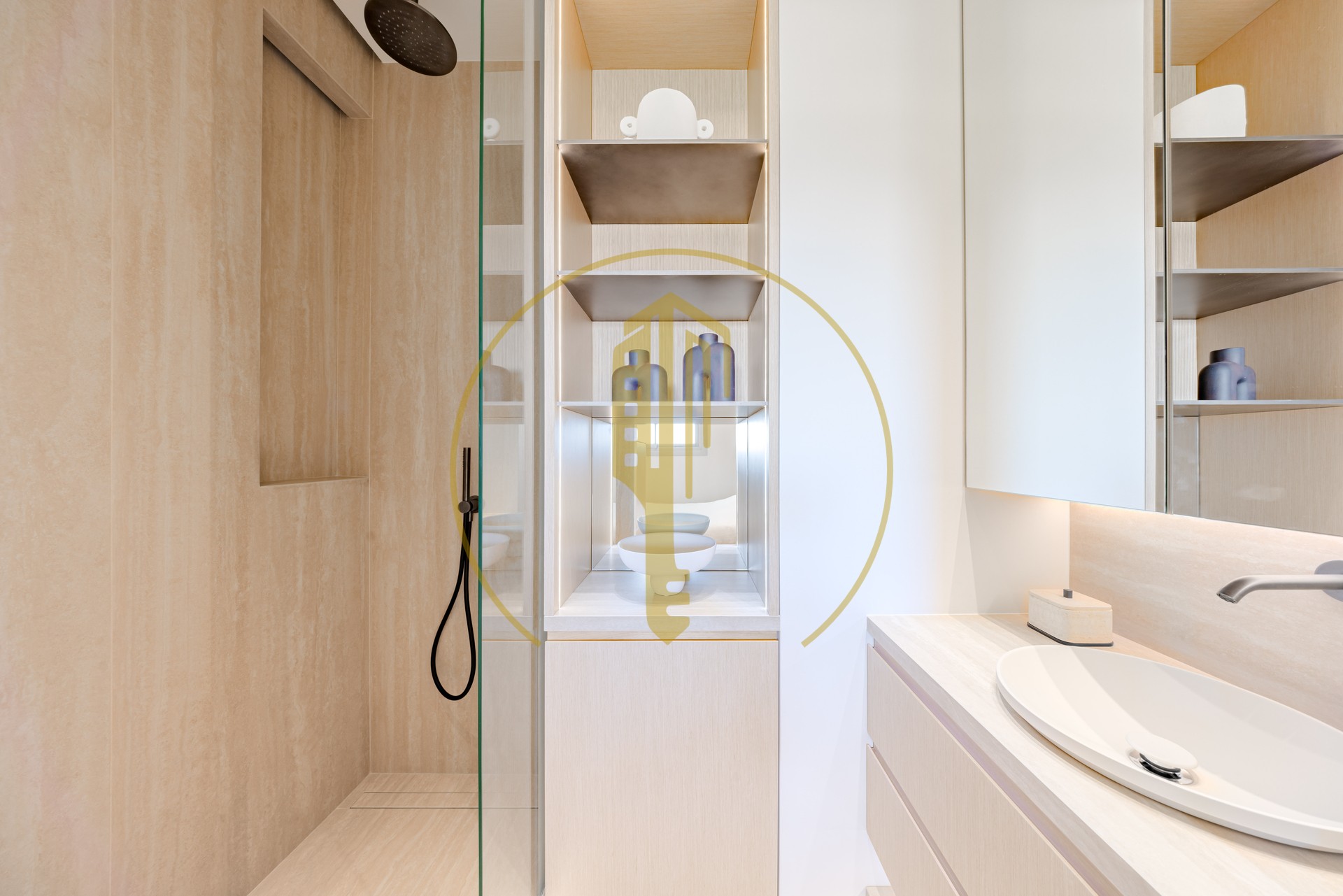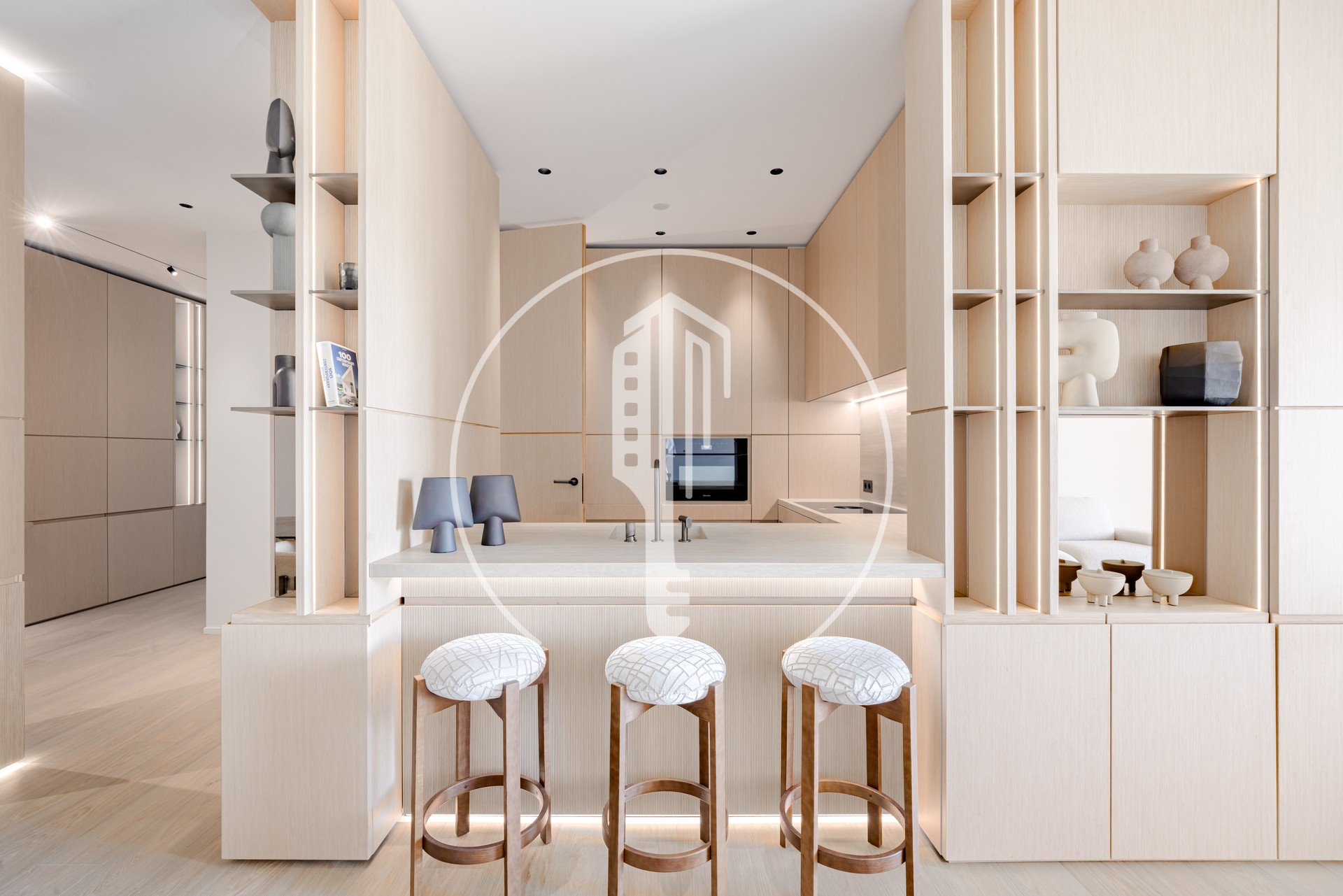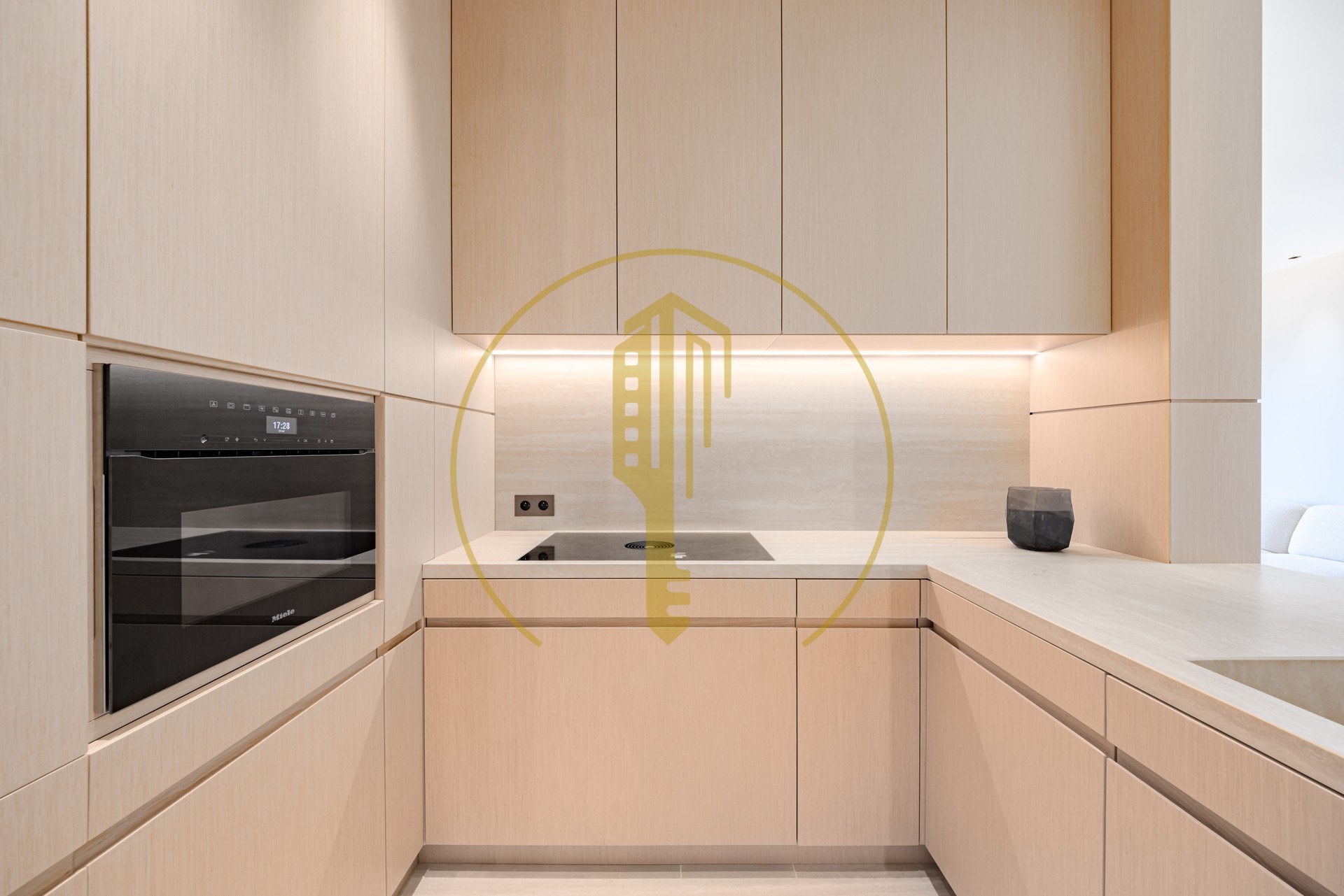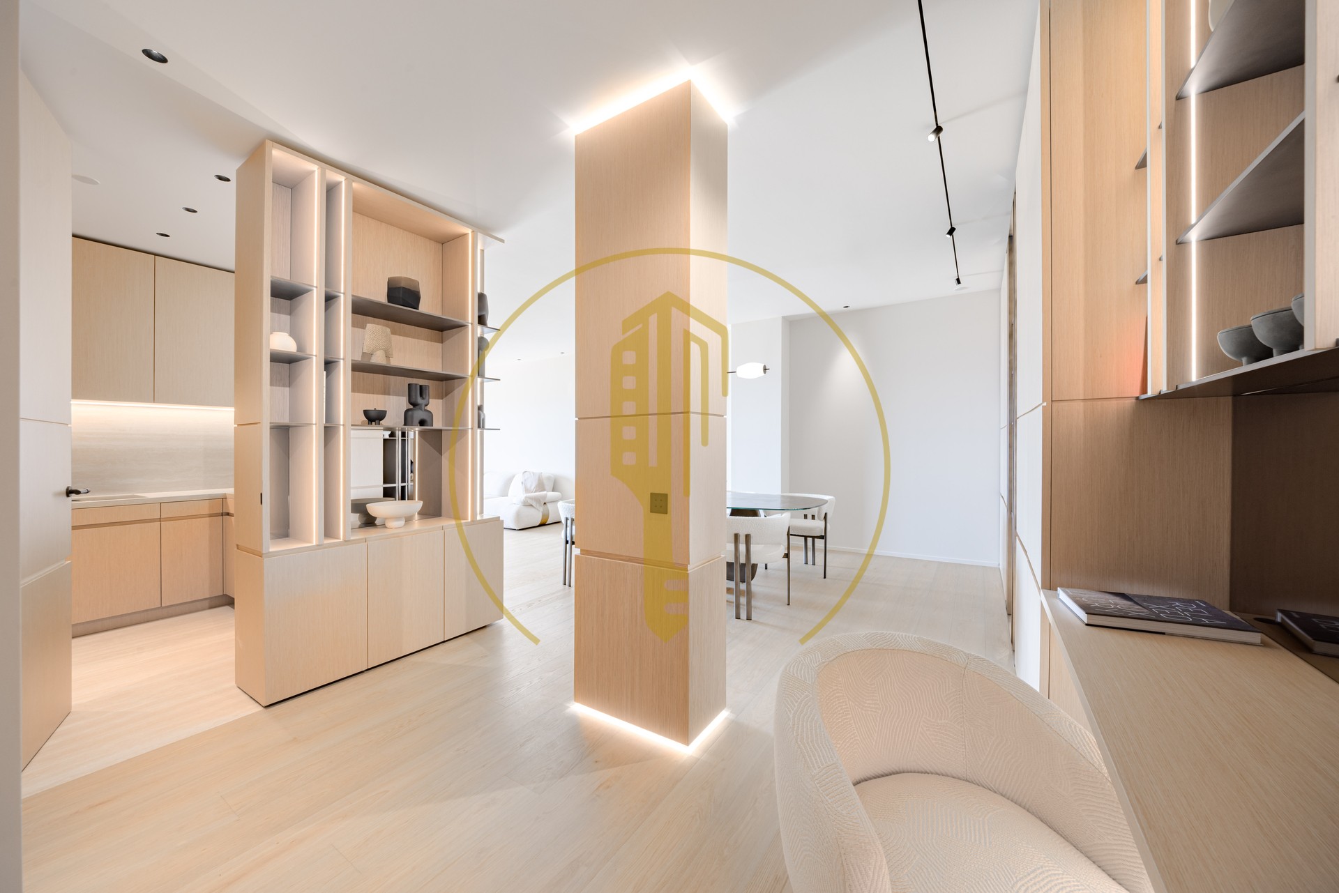 Ad un piano alto, questo appartamento spazioso offre un ampio soggiorno con zona pranzo, una cucina semi-aperta completamente attrezzata, 2 camere da letto, 2 bagni e servizi ospiti.
