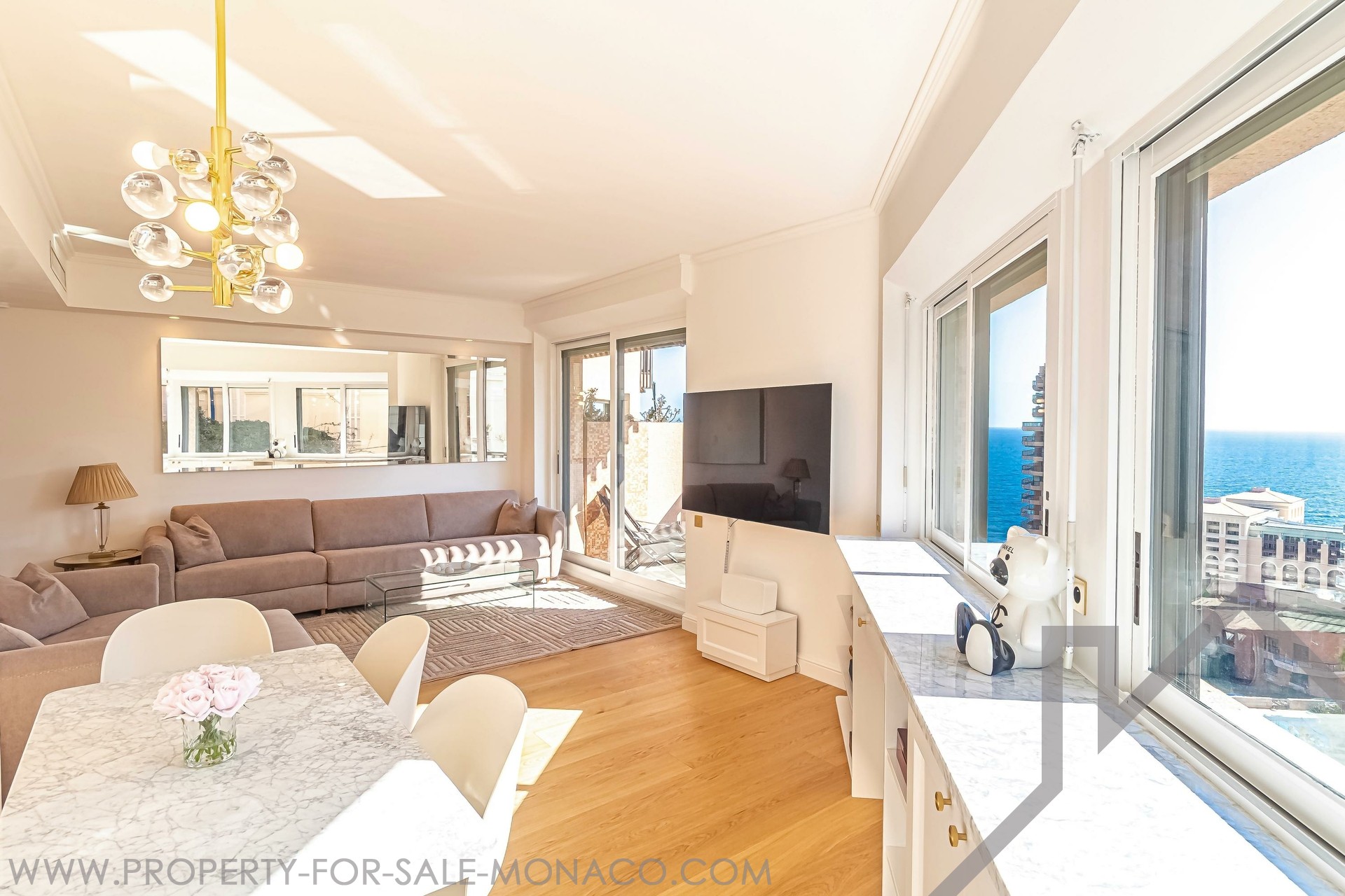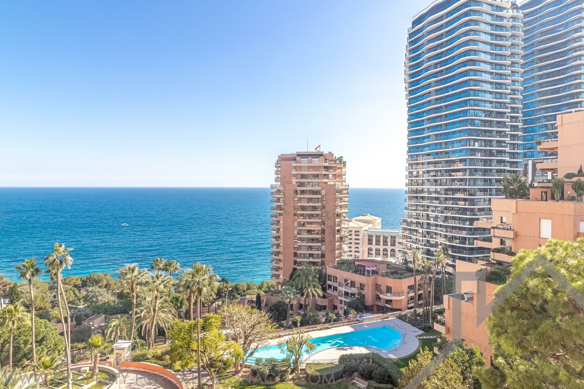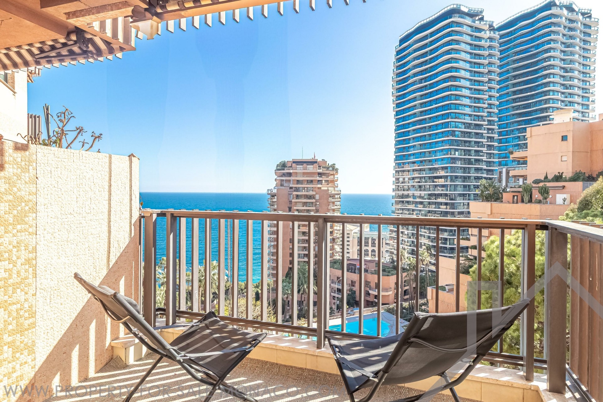 Nel quartiere di Saint Roman, vicino alla prestigiosa spiaggia del Monte-Carlo Beach e ai campi del Country Club, ampio bilocale ristrutturato e arredato con terrazze, che offre una bellissima vista mare in una splendida residenza con piscina
