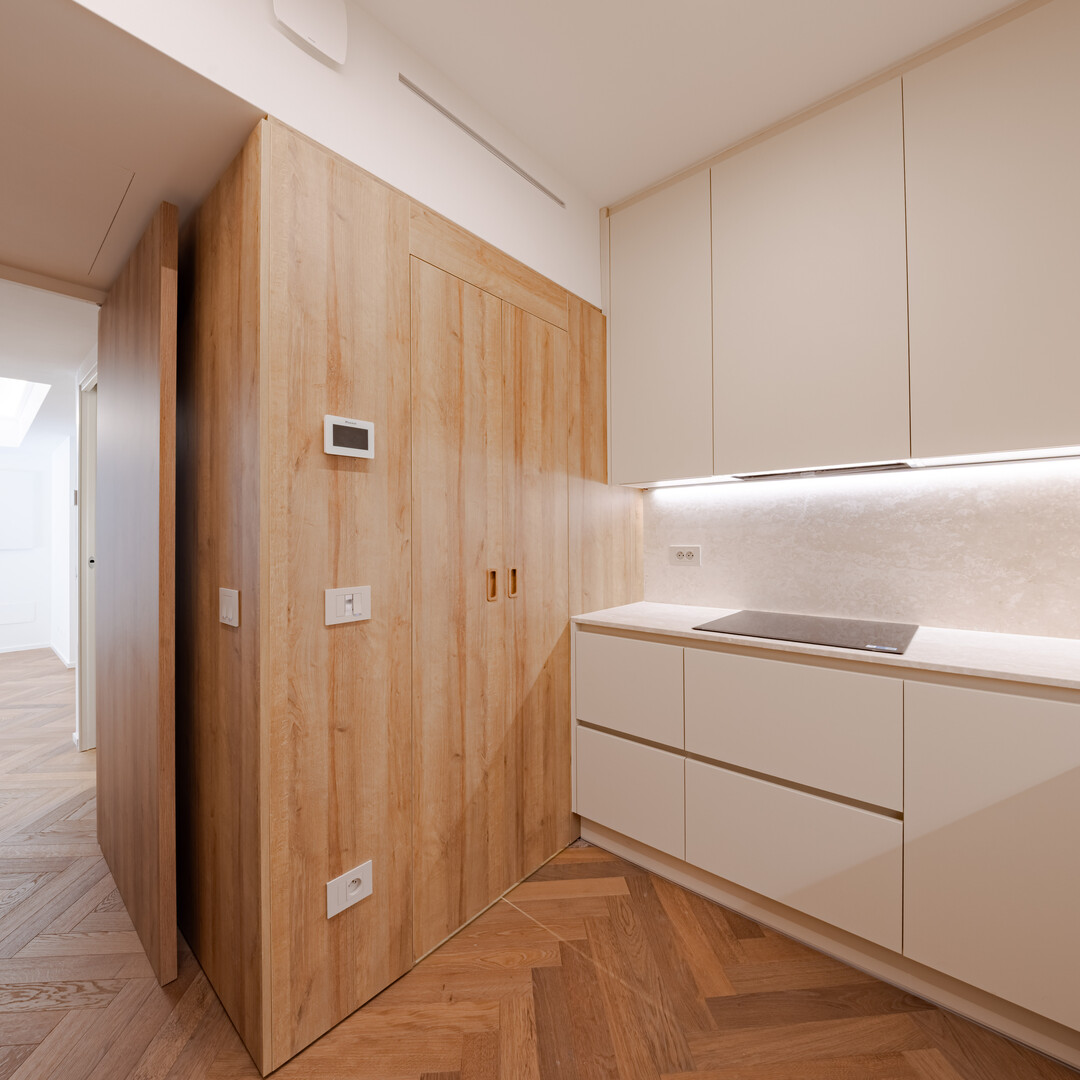 Dalla generosa metratura, è composto da un ampio e luminoso soggiorno con cucina a vista, due camere da letto, due bagni e un piacevole balcone. I materiali e le finiture sono stati scelti con cura per coniugare eleganza e comfort nella vita di tutti i giorni.
