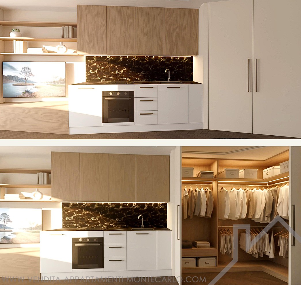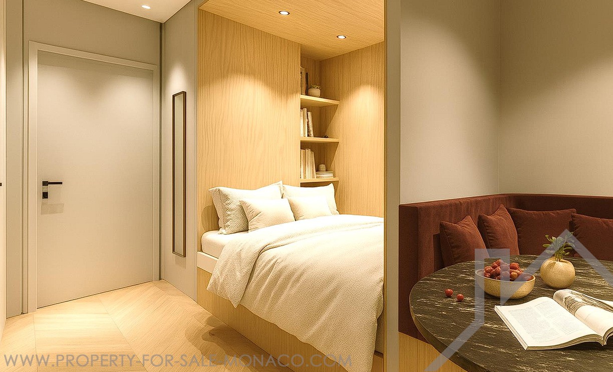 Eccezionale appartamento di tipo studio con alcova separata ad un piano elevato di una residenza di prestigio nel Cuore di Monaco con servizio concierge 24H e vicino a tutte le attività commerciali (incluso Carrefour city che si trova al piano terreno della residenza). L'appartamento è composto da ingresso, cucina integrata al soggiorno che si apre davanti alla generosa loggia con vista casino e mare, alcova al fine di preservare una separazione ideale tra spazio di vita e zona notte, bagno completo. L'appartamento è attualmente in fase di ristrutturazione e sarà consegnato chiavi in mano seconda il rendering qui presentato. Possibilità di acquistare un parcheggio grande al prezzo di 400.000€.