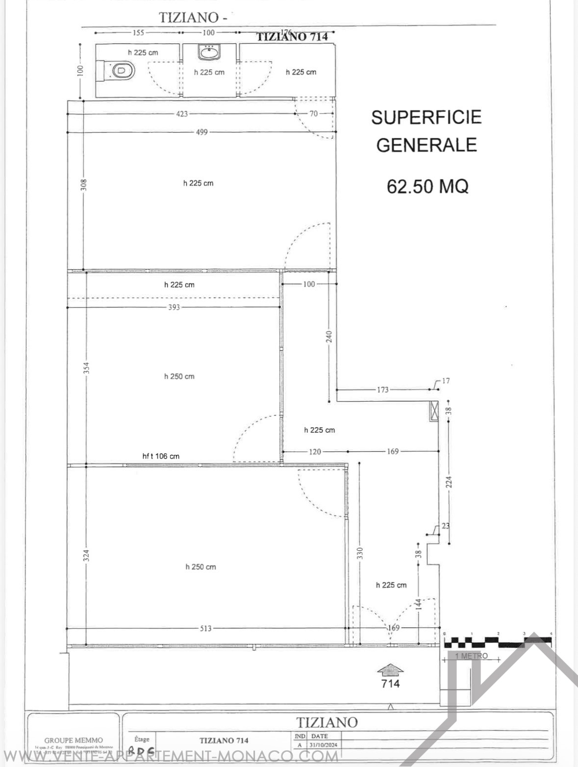 Superficie totale : 62.5 m²