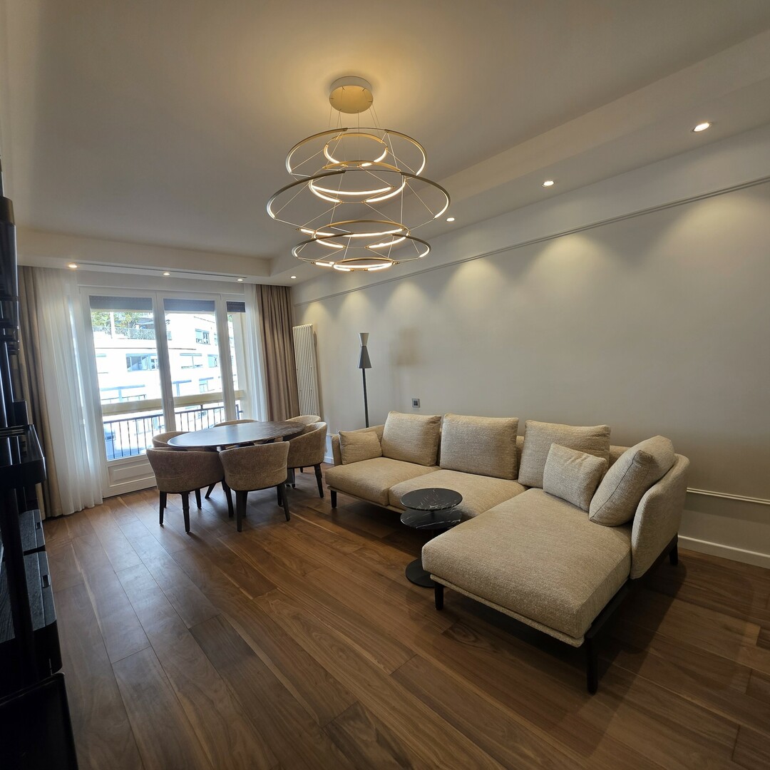 Questo superbo appartamento di 3 stanze è stato completamente ristrutturato con finiture di alto livello e arredato con mobili su misura, offrendo un ambiente abitativo raffinato e contemporaneo.