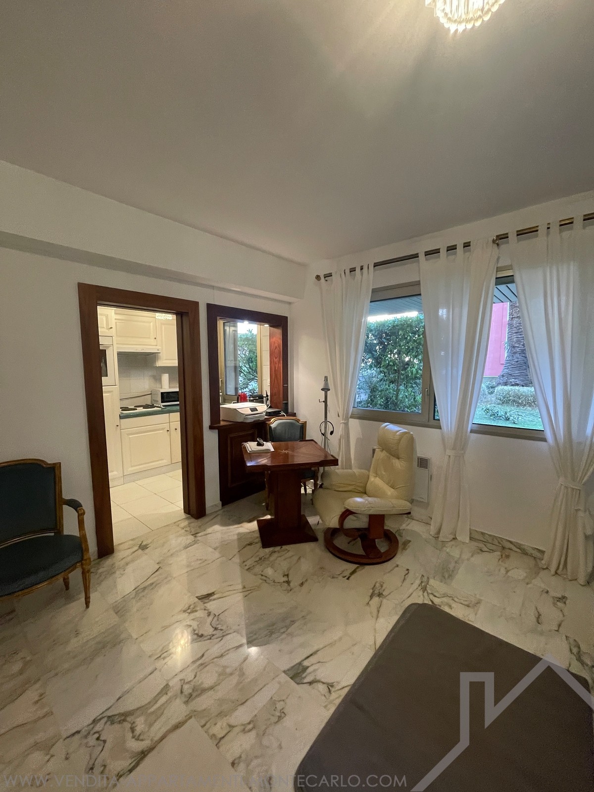 Situato al piano terra dell'edificio “Les Oliviers”, con portineria, nel quartiere del Jardin Exotique, monolocale composto da:
