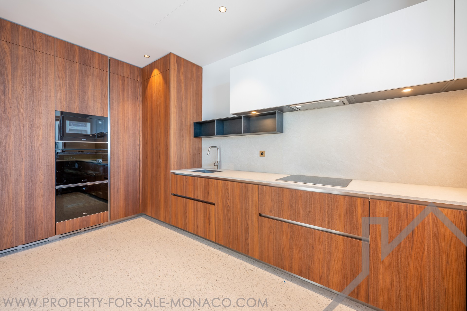L'appartamento offre un ampio soggiorno ampliato da una terrazza affacciata sul mare, una cucina moderna completamente attrezzata, una lavanderia, un bagno per gli ospiti, oltre a due camere da letto con bagno privato, ciascuna con balcone e camerino, anch'essa rivolta al mare.
