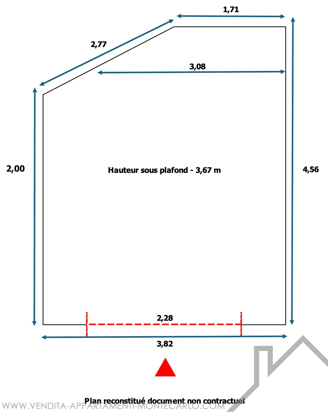 larghezza 3,82 m - con una porta di 2,28 m