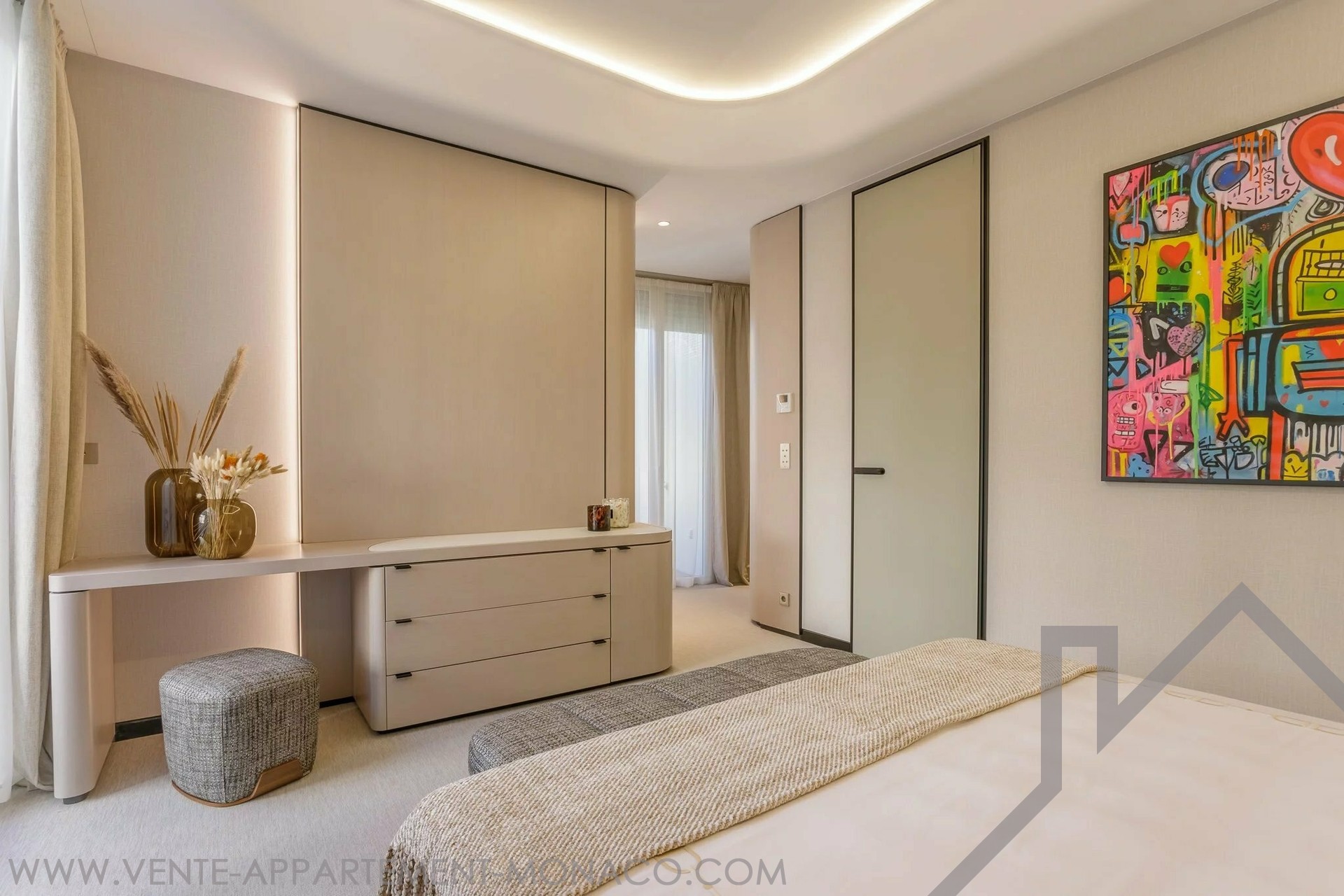 Infine, l'ultimo piano della villa è una vera e propria oasi di pace, rara nel Principato di Monaco, con la sua vegetazione lussureggiante, la piscina privata e la zona relax: un luogo ideale per intrattenere gli ospiti in un ambiente intimo e raffinato.