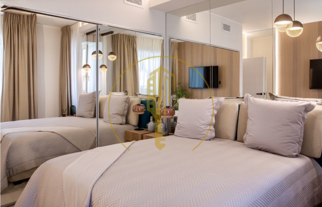 L'appartamento offre spazi luminosi e perfettamente disposti, tra cui un grande soggiorno, tre camere da letto, tre bagni, un camerino e una lavanderia. I materiali e le finiture sono stati selezionati con cura per offrire un livello particolarmente elevato di comfort e qualità.