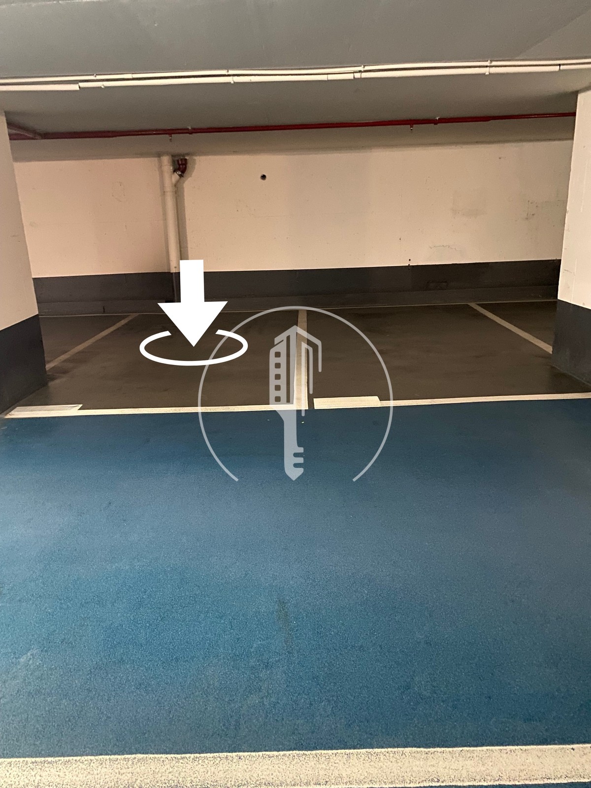 This secure parking space features wide access and ample ceiling height, ideal for all types of vehicles.