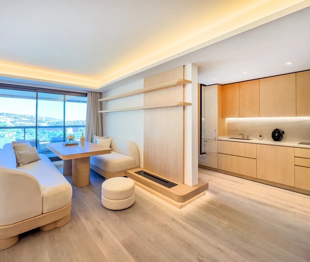 Questo appartamento chiavi in mano, completamente arredato, combina materiali nobili, finiture in legno chiaro e design contemporaneo per creare un insieme armonioso e di grande raffinatezza. Due camere da letto e due eleganti bagni offrono un comfort esclusivo al massimo livello.