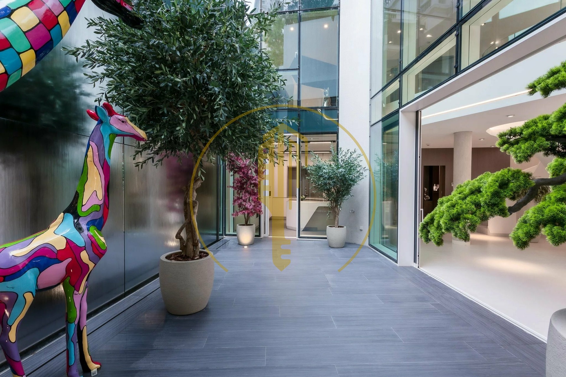 Infine, l'ultimo piano della villa è una vera e propria oasi di pace, rara nel Principato di Monaco, con la sua vegetazione lussureggiante, la piscina privata e la zona relax: un luogo ideale per intrattenere gli ospiti in un ambiente intimo e raffinato.