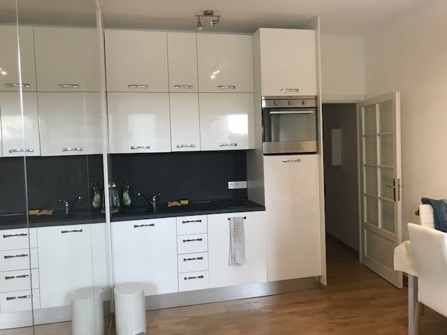 Entrerete attraverso una porta blindata in un corridoio con un ripostiglio, segue il magnifico bagno in piastrelle di marmo e poi arriva il bellissimo soggiorno, luminoso (vetrata delle dimensioni del muro), moderna cucina completamente attrezzata, un sacco di spazio di archiviazione.