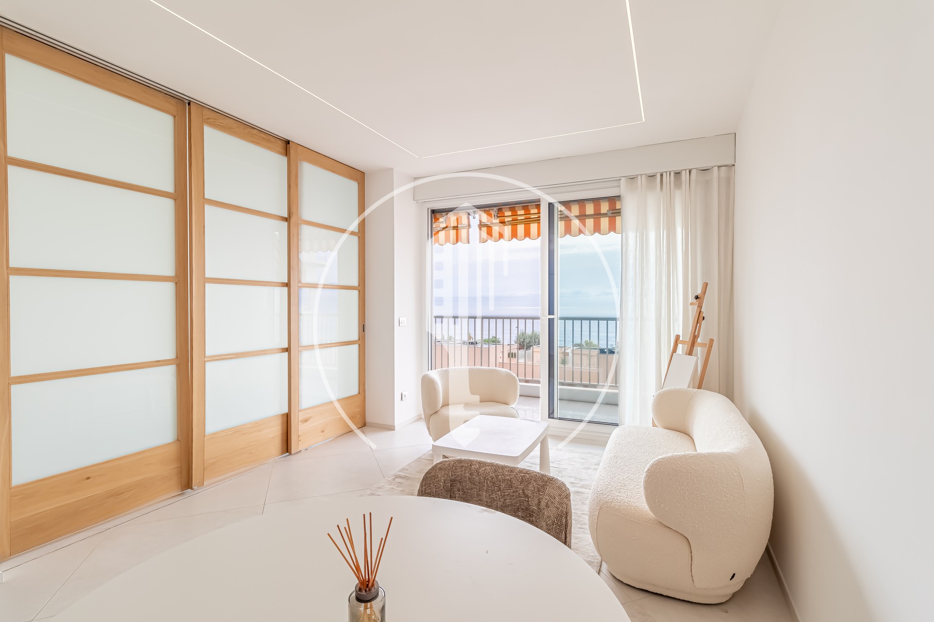 Completamente ristrutturato, questo luminoso bilocale si apre su un ingresso che conduce ad un accogliente soggiorno ampliato da una terrazza con vista mare. La cucina a vista, attrezzata con cura, accompagna soggiorni luminosi e funzionali. La camera da letto ha un facile accesso al ripostiglio, completato da un elegante bagno con doccia e servizi igienici per gli ospiti. Le finiture contemporanee e la distribuzione dei fluidi rafforzano il comfort dell'insieme.