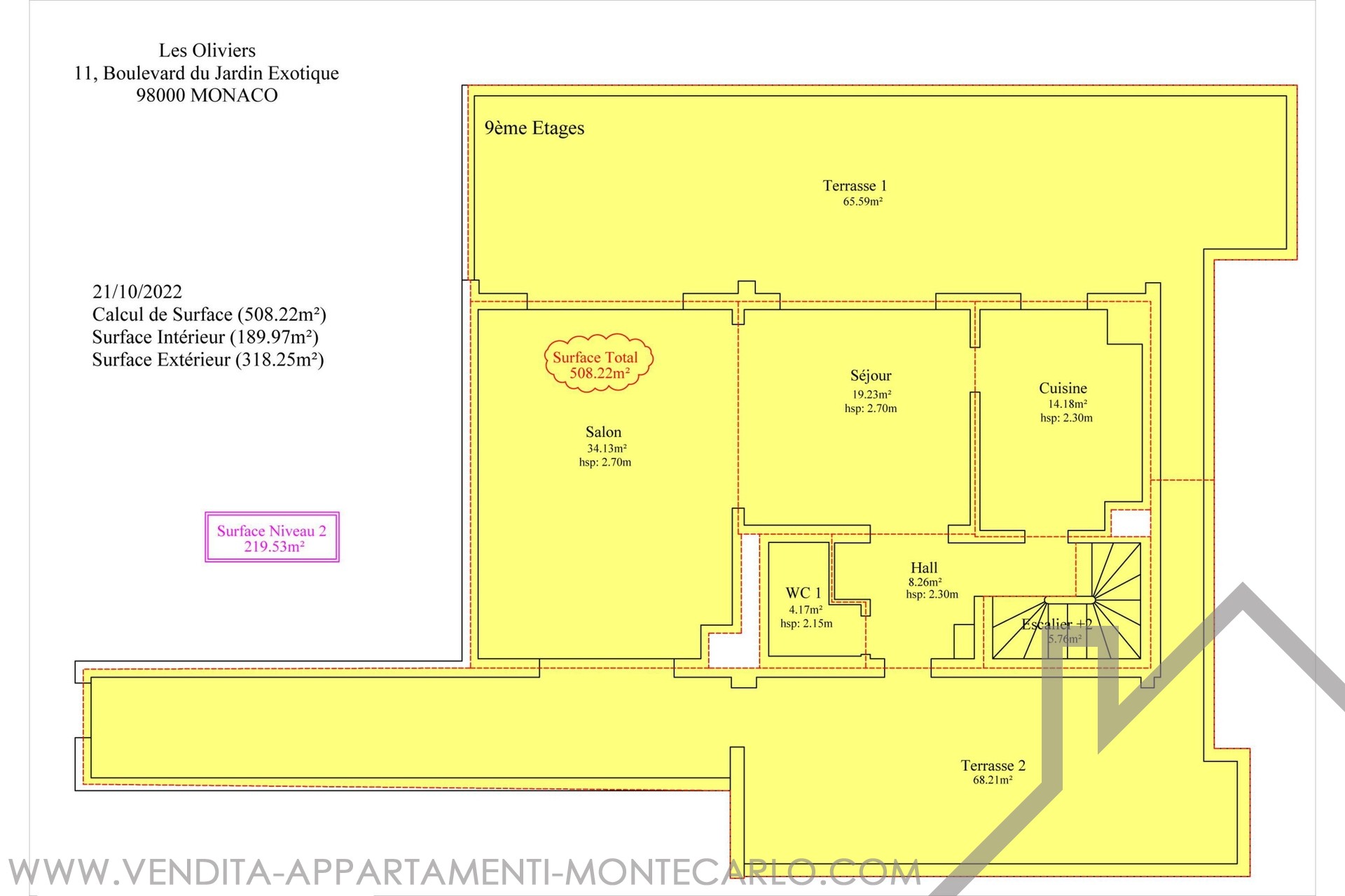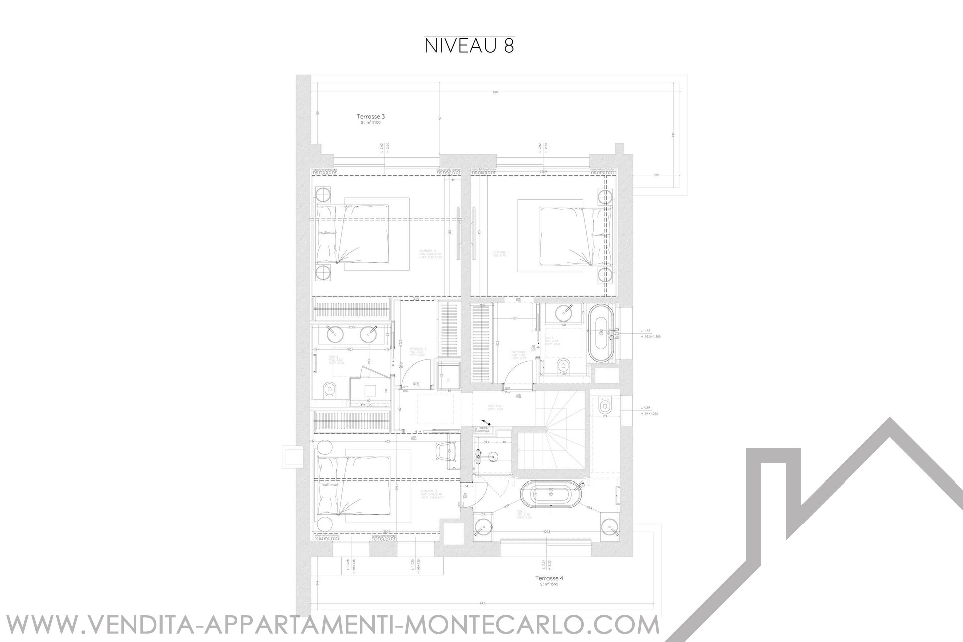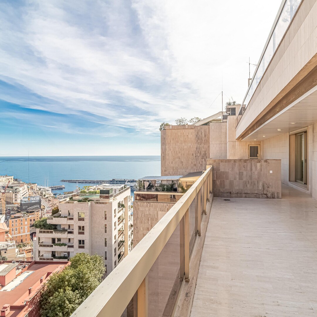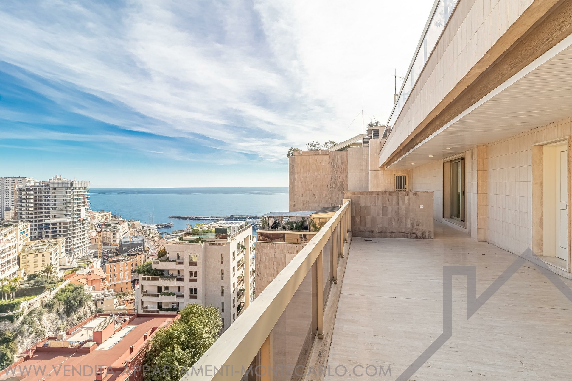 Distribuito su 3 piani, questo bellissimo triplex di 508 m², di cui 318 m² di terrazzo, è situato nel quartiere del Giardino Esotico, all'interno di un edificio con servizio di portineria, con accesso diretto al porto (tramite ascensore pubblico).