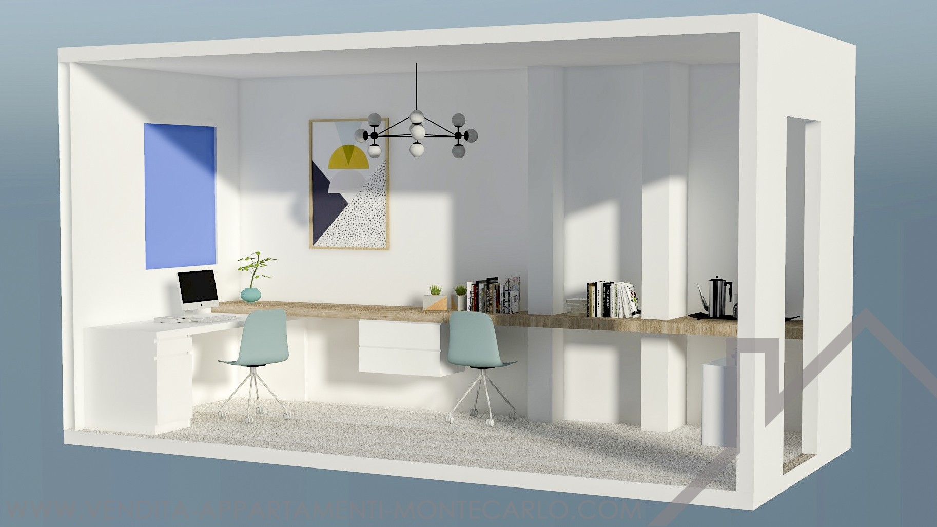 Ideale per domiciliazione di società tipo SARL. Possibilità di installare due postazioni di lavoro (manager + 1 dipendente).