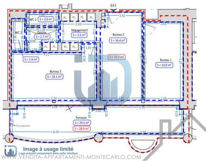 Superficie abitabile : 75 m²