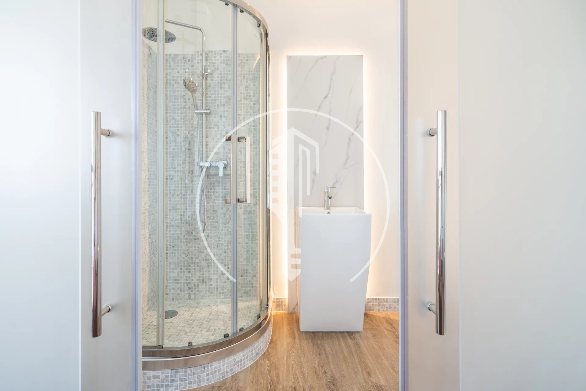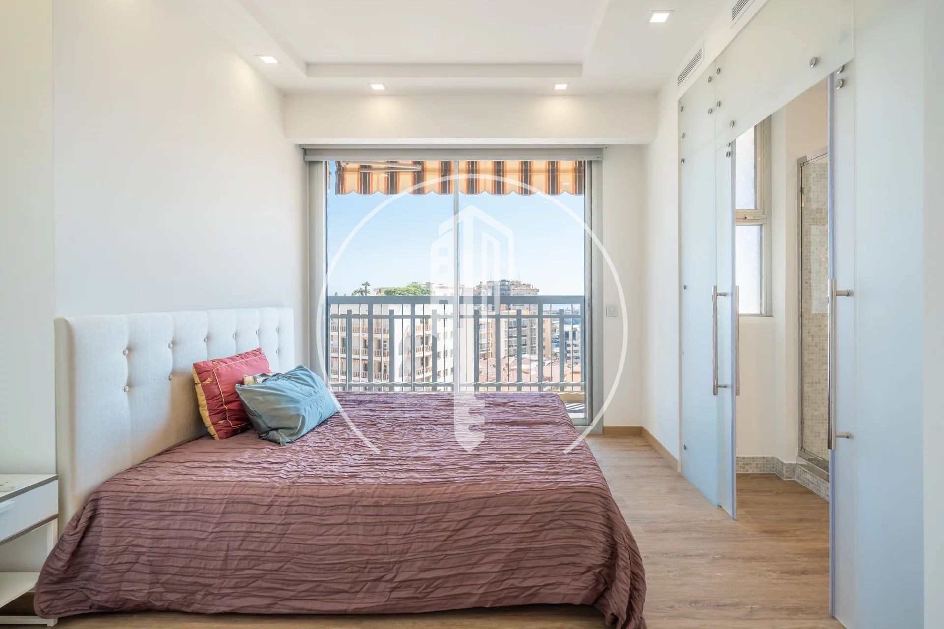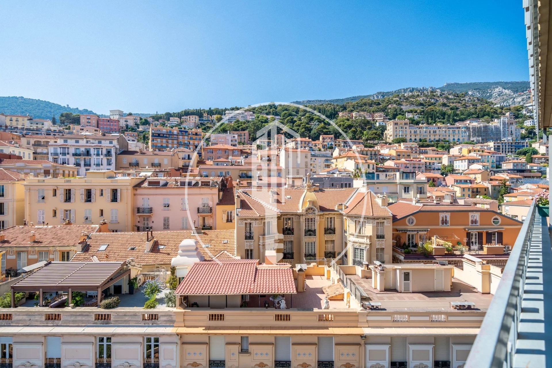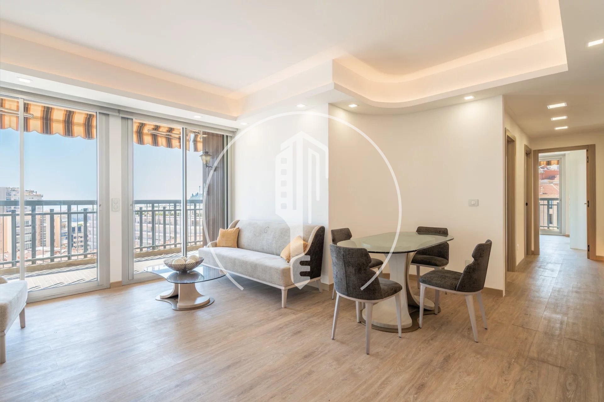Luminoso trilocale completamente ristrutturato situato all'8° piano con 95 m² di superficie abitabile e 23 m² di terrazze con vista sul mare e sulla città.